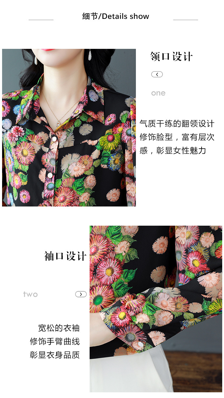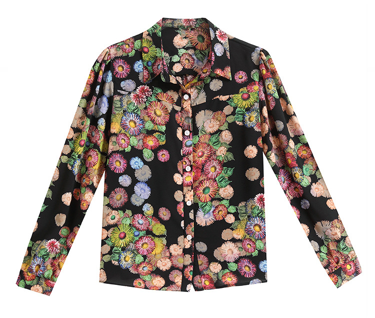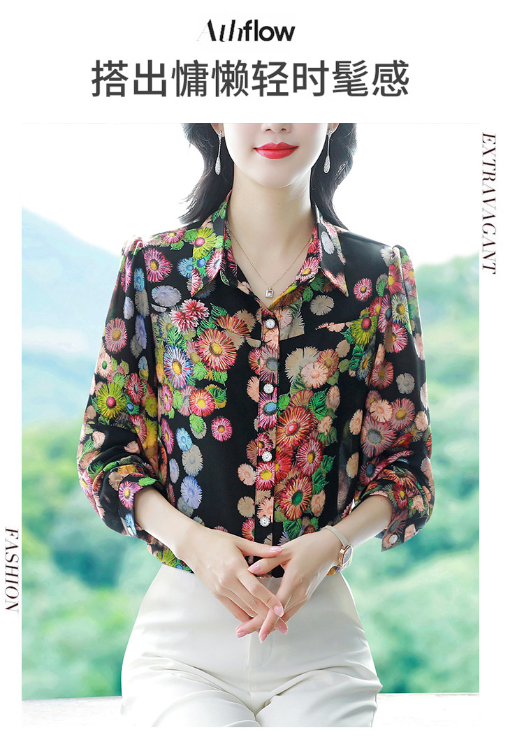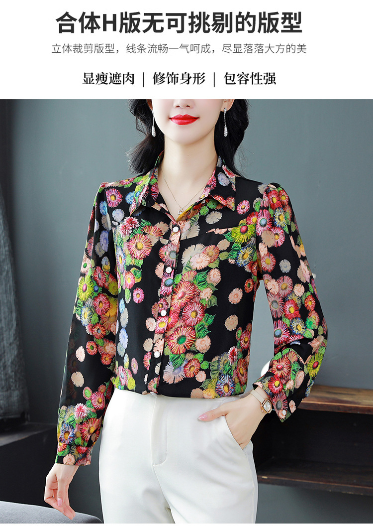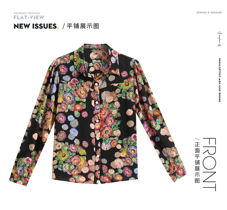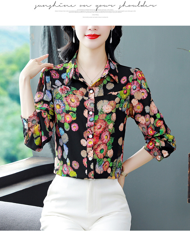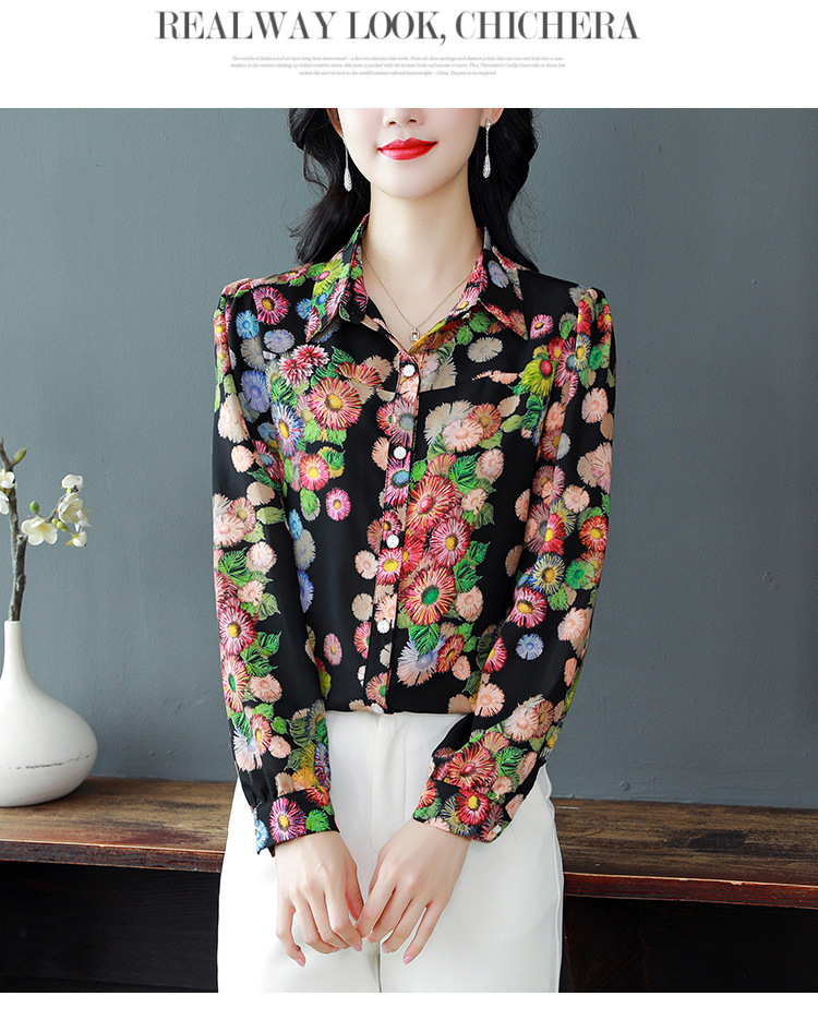 리얼 샷 라이트 럭셔리 패션 인쇄 꽃 셔츠 여성의 가을 새로운 우아한 서양 스타일 슬리밍 긴 소매 셔츠