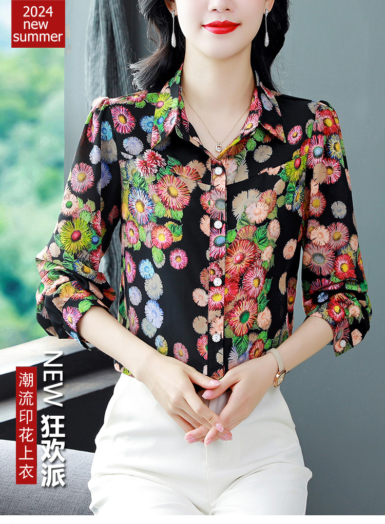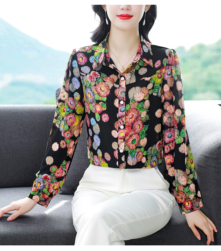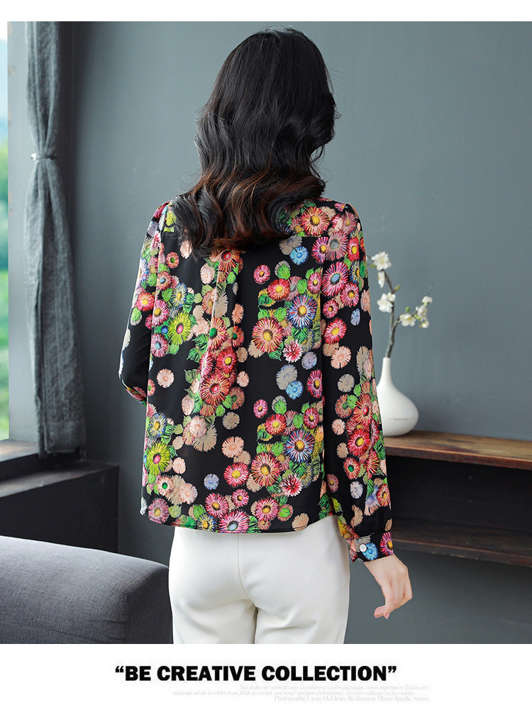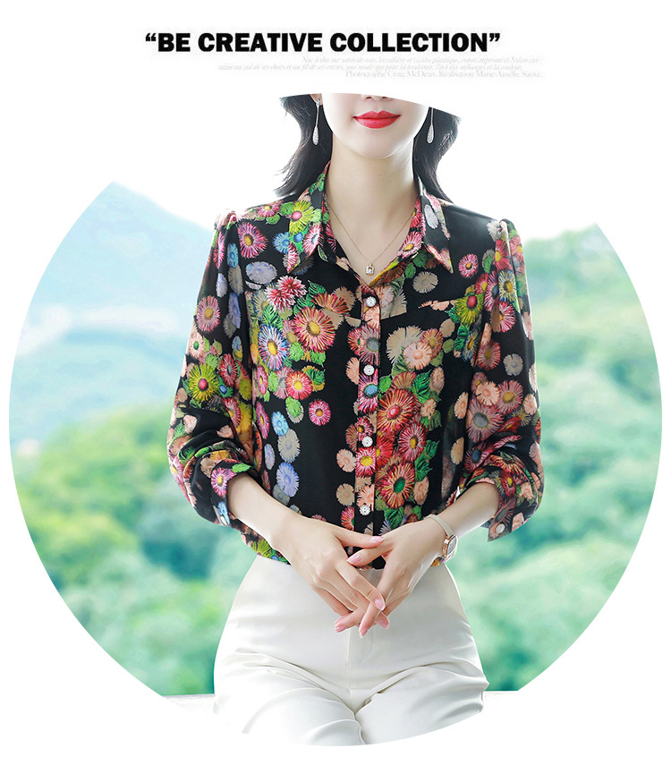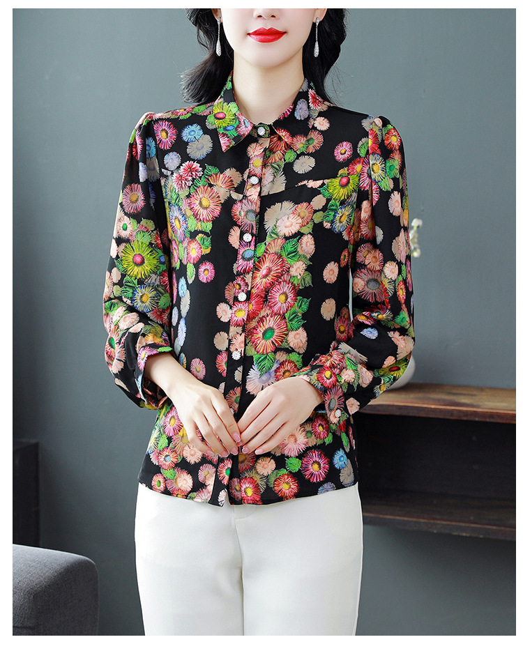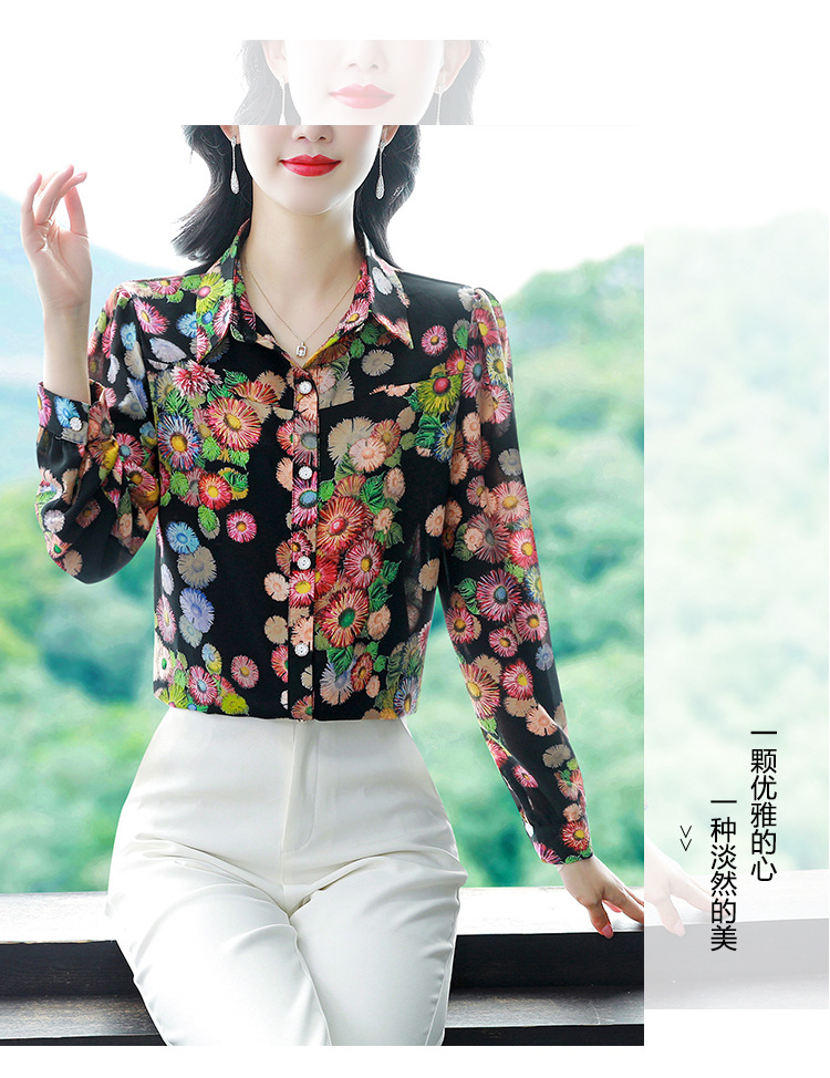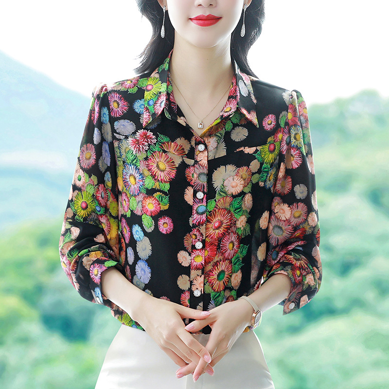 리얼 샷 라이트 럭셔리 패션 인쇄 꽃 셔츠 여성의 가을 새로운 우아한 서양 스타일 슬리밍 긴 소매 셔츠