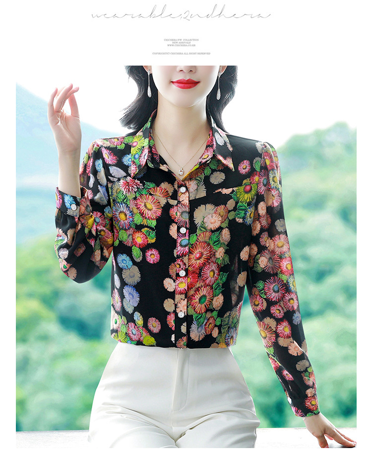 리얼 샷 라이트 럭셔리 패션 인쇄 꽃 셔츠 여성의 가을 새로운 우아한 서양 스타일 슬리밍 긴 소매 셔츠스토어 가기