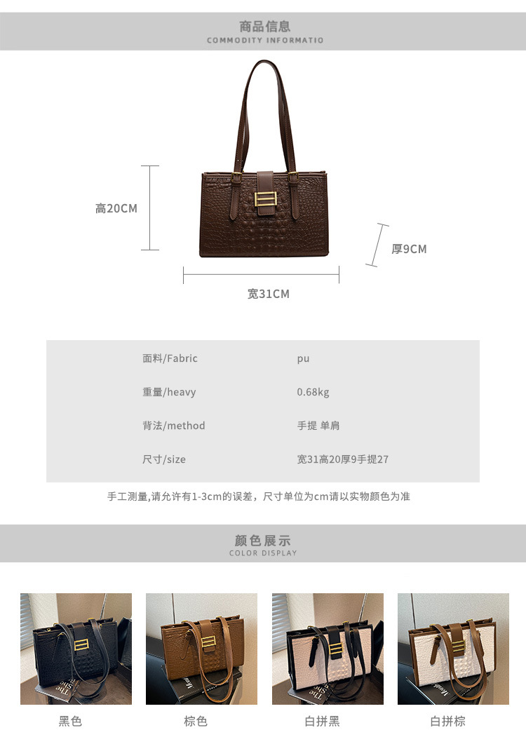 대용량 가방 여성 가방 2024 올해 새 악어 패턴 빈티지 숄더 백 유행 올 매치 섬유 토트 백스토어 가기