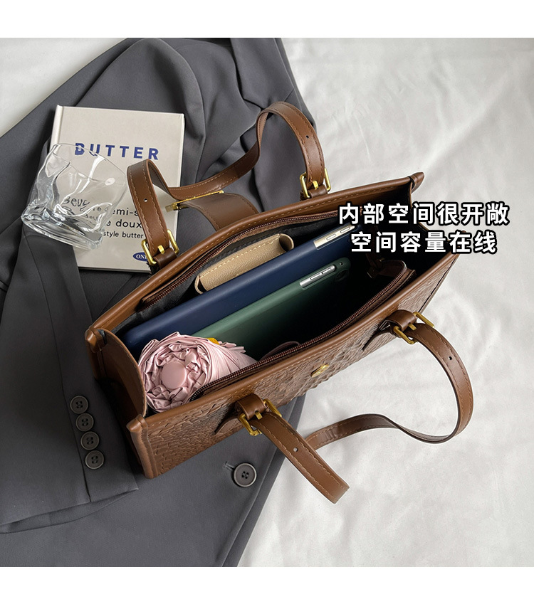 대용량 가방 여성 가방 2024 올해 새 악어 패턴 빈티지 숄더 백 유행 올 매치 섬유 토트 백