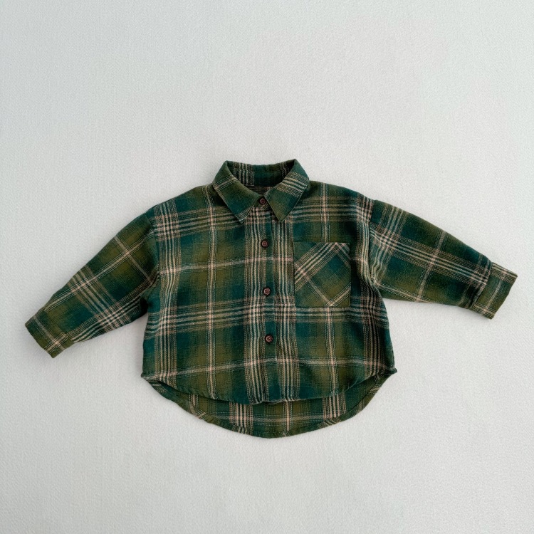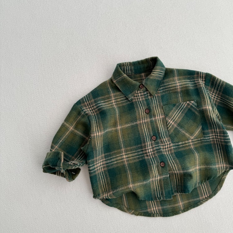 어린이 격자 무늬 셔츠 가을 새로운 소년과 소녀 빈티지 포켓 셔츠 아기 북유럽 스타일 샌딩 셔츠 재킷스토어 가기