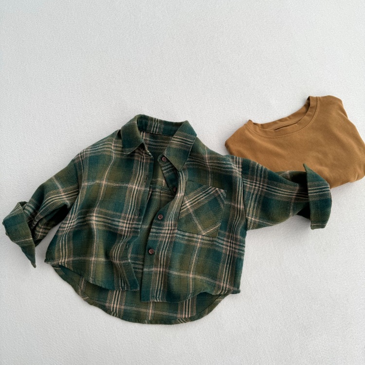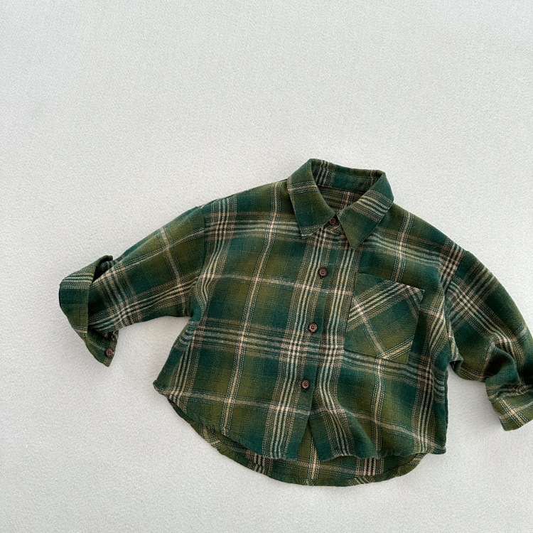 어린이 격자 무늬 셔츠 가을 새로운 소년과 소녀 빈티지 포켓 셔츠 아기 북유럽 스타일 샌딩 셔츠 재킷