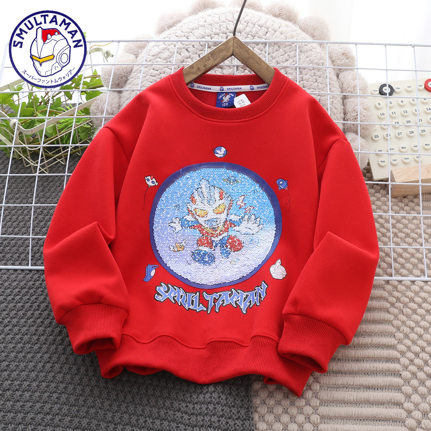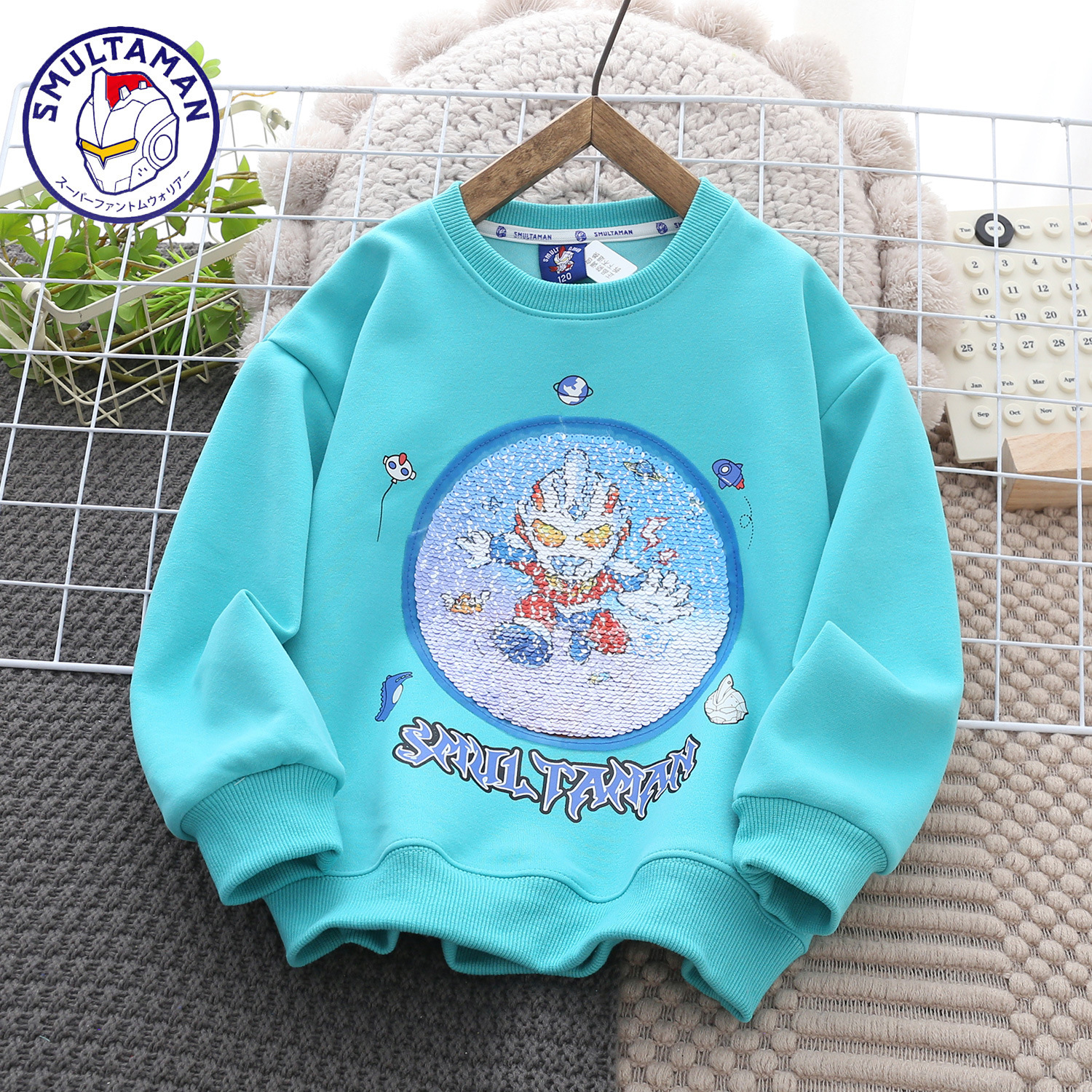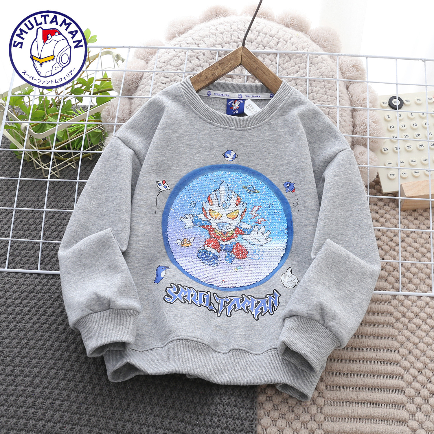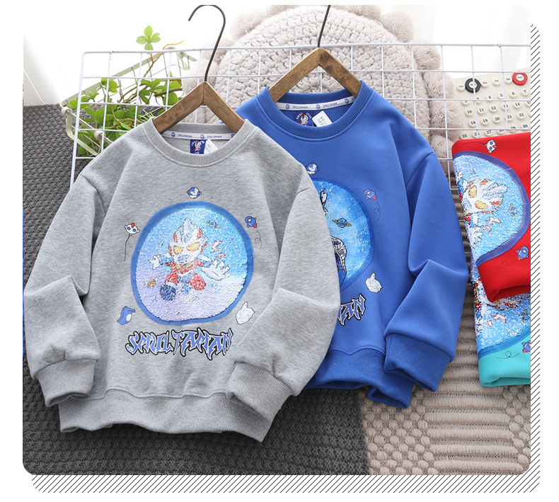 Altman Children's Wear 가을 2024 새로운 유행 스타일 얼굴을 바꾸는 크루 넥 스웨터 소년 소녀 올 매치 긴팔 셔츠