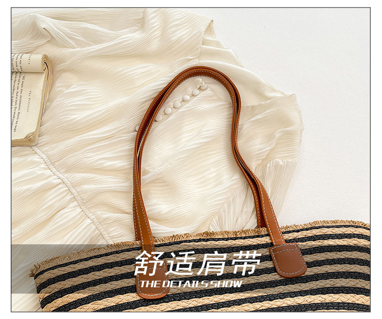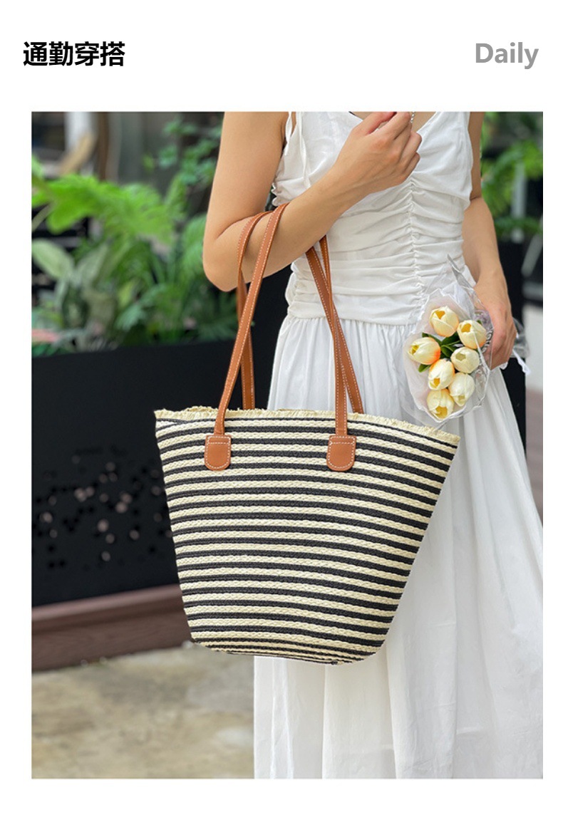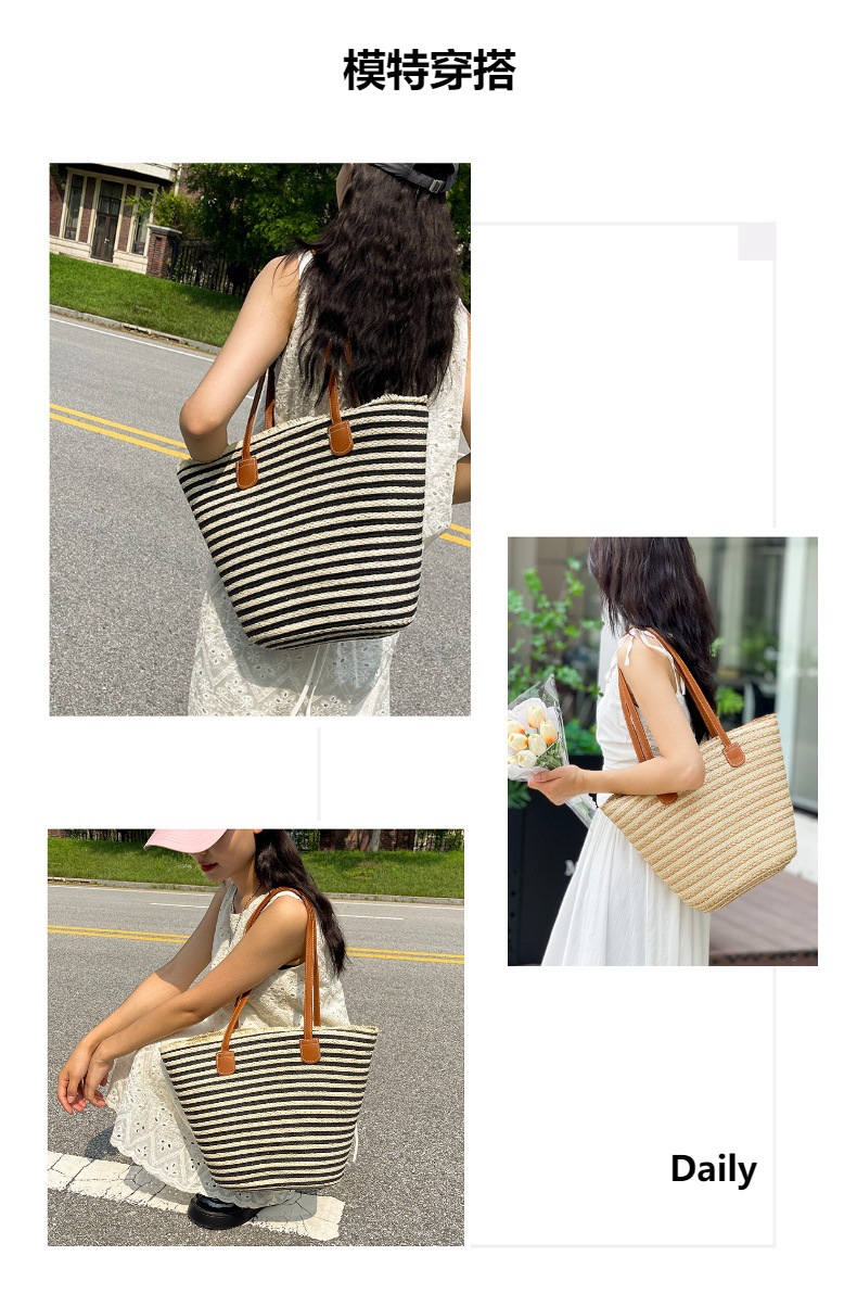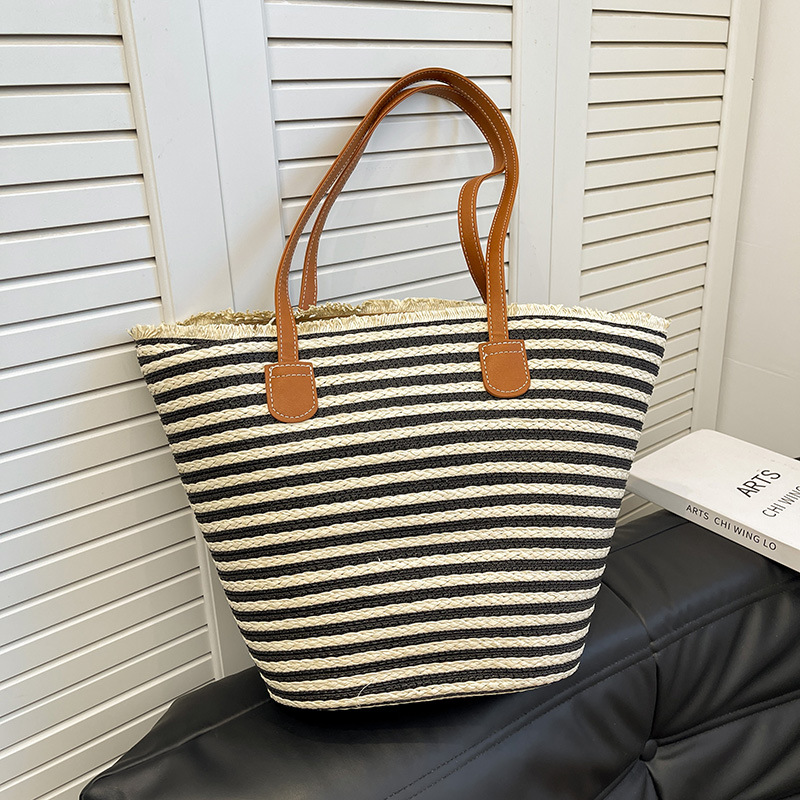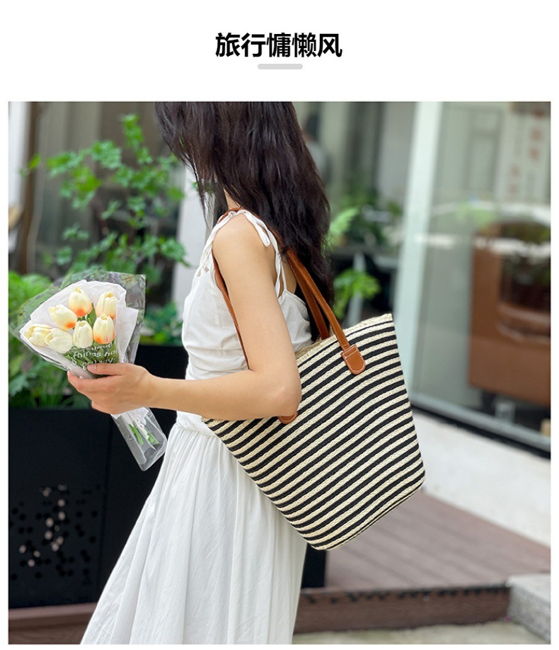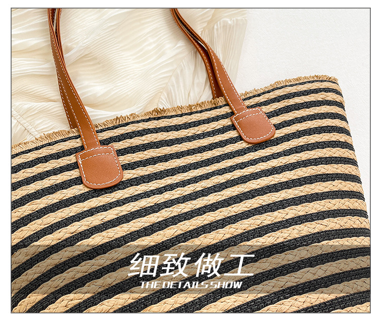 공장 재고 대용량 줄무늬 루즈 밀짚 짠 가방 레트로 예술적 짠 가방 해변 어깨 핸드백
