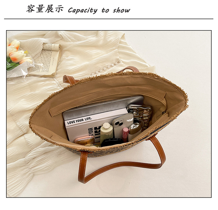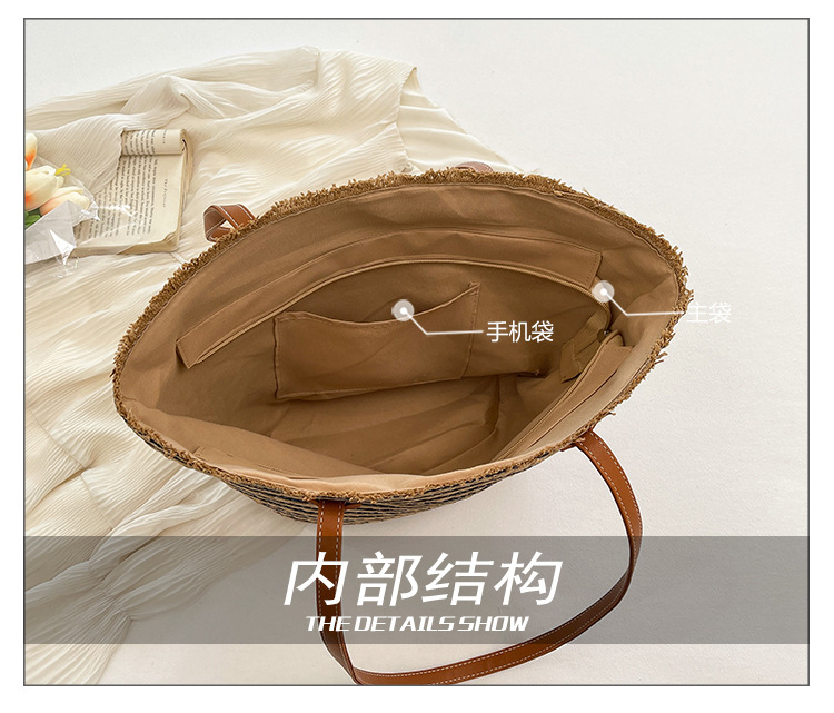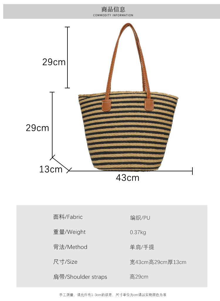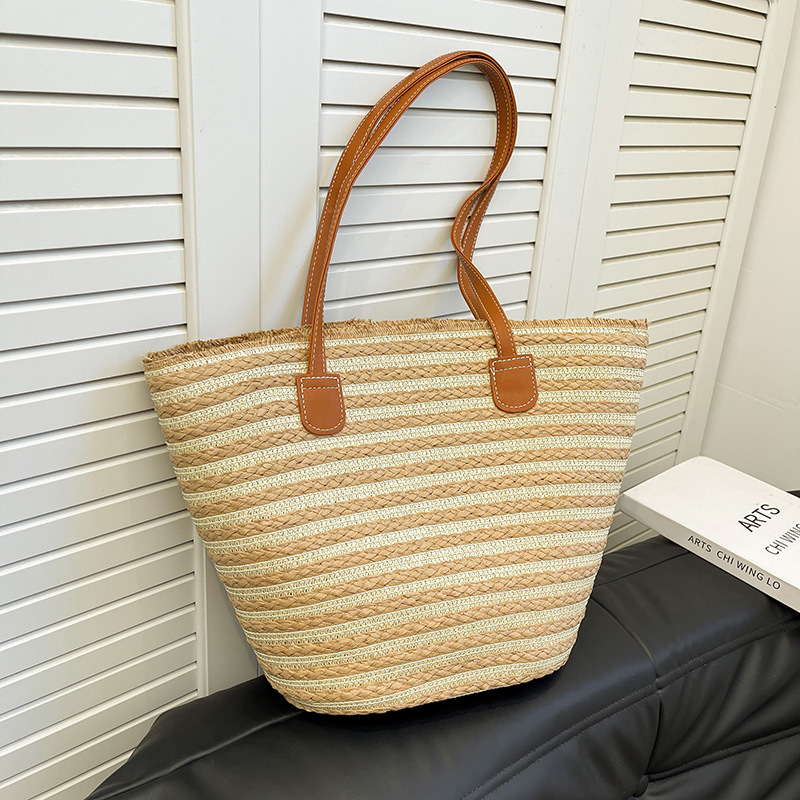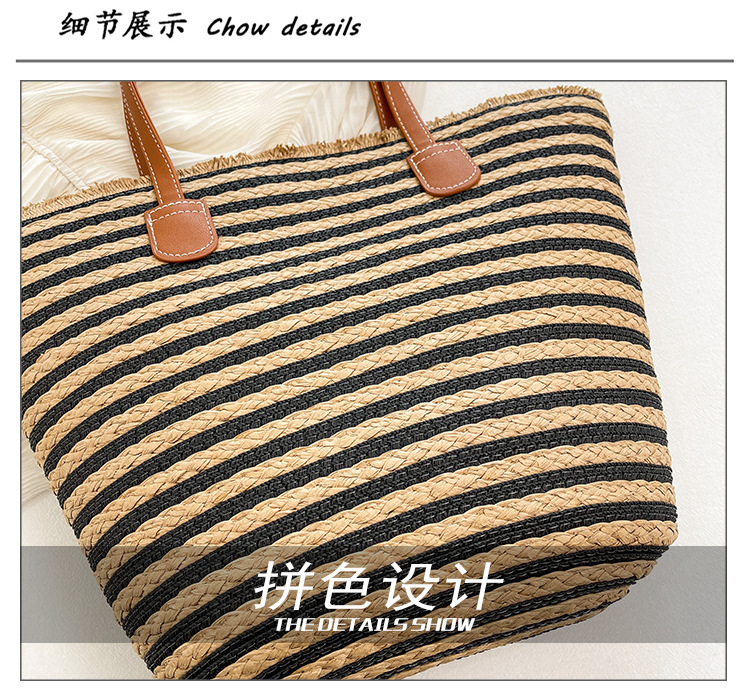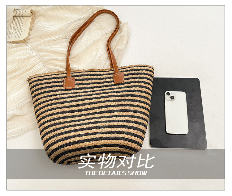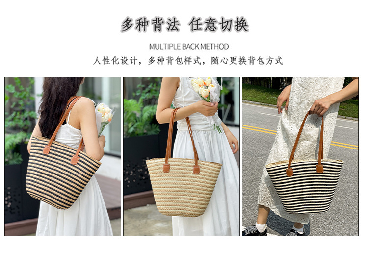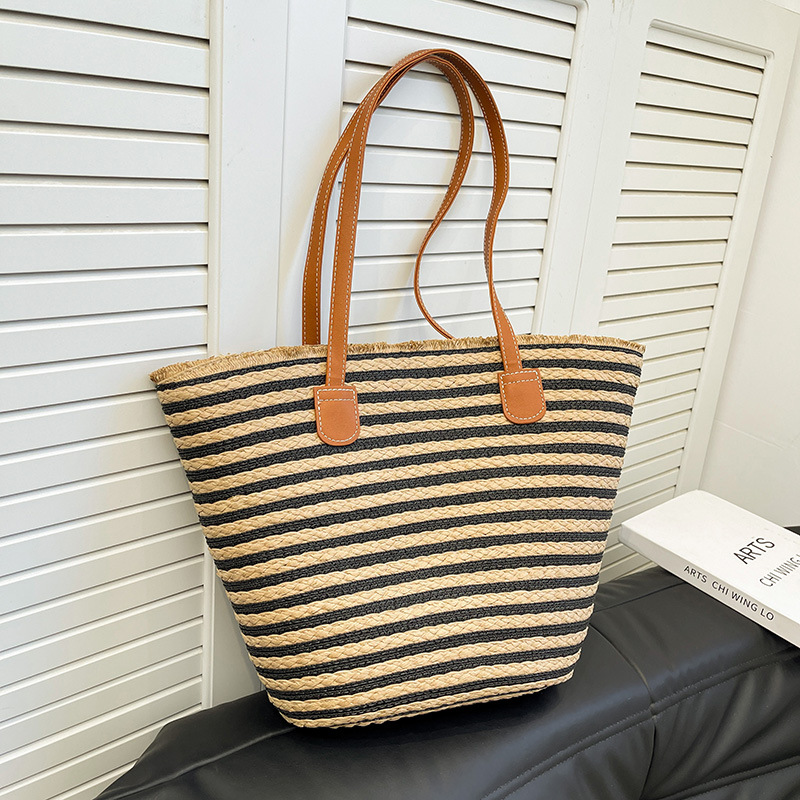공장 재고 대용량 줄무늬 루즈 밀짚 짠 가방 레트로 예술적 짠 가방 해변 어깨 핸드백