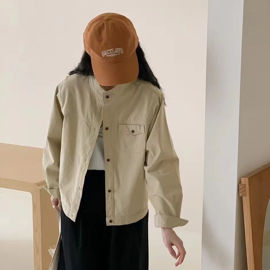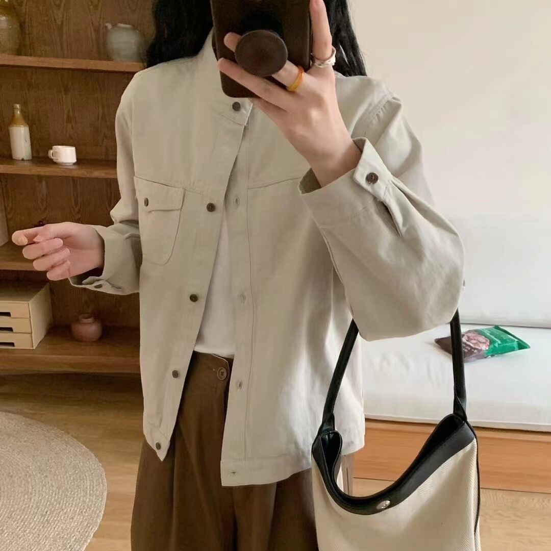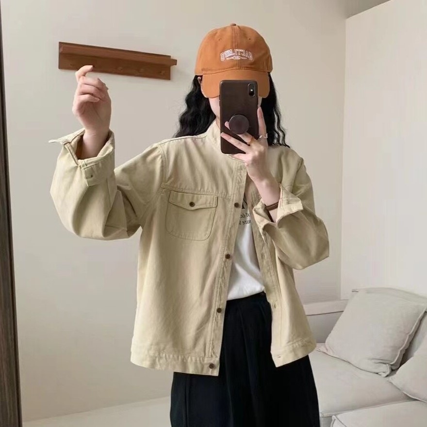 가을 2024 새로운 도착 스타일 한국 스타일 수직 칼라 느슨한 긴팔 재킷 코트 여성 작업복 캐주얼 탑