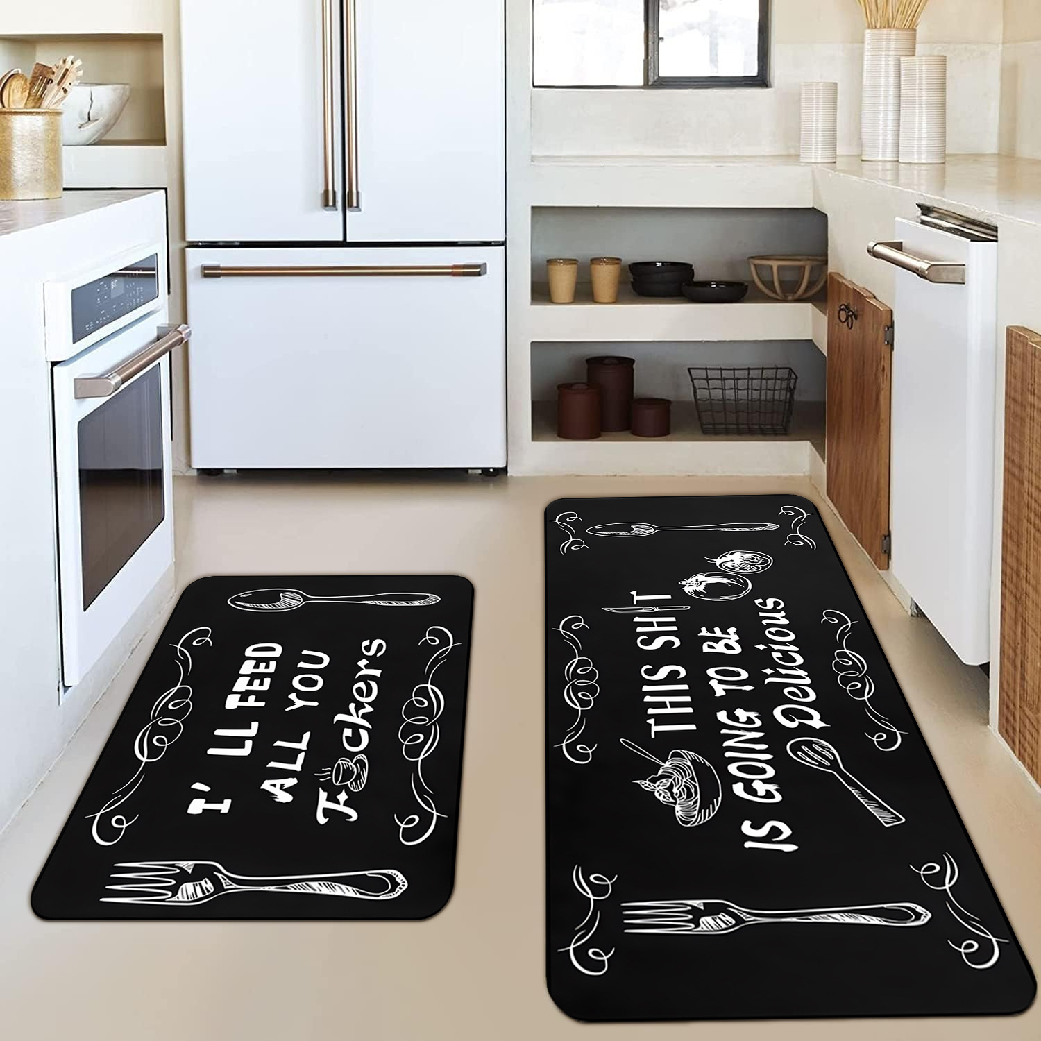 Temu 크로스 보더 크리에이티브 나이프와 포크 주방 바닥 매트 긴 얼룩 방지 미끄럼 방지 흡수 조합 매트 카펫스토어 가기