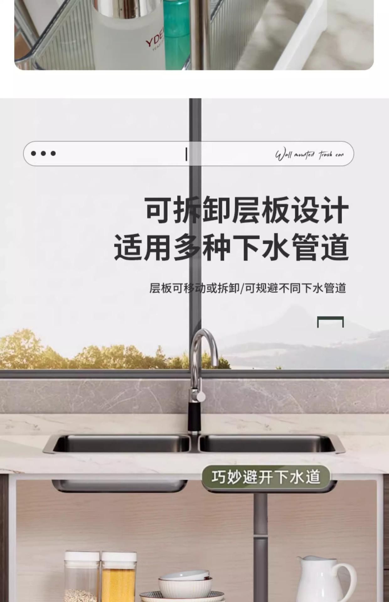 주방 확장 가능한 싱크 스토리지 랙 캐비닛 라미네이트 랙 주방 캐비닛 스토리지 다기능 냄비 랙 스토리지 선반