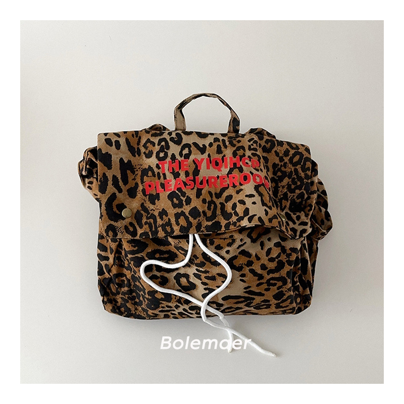 Ins Blogger 동일 스타일 어린이 배낭 독특한 데님 배낭 소년 소녀를위한 올 매치 컨캐브 레오파드 무늬 배낭