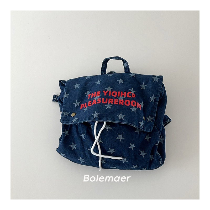 Ins Blogger 동일 스타일 어린이 배낭 독특한 데님 배낭 소년 소녀를위한 올 매치 컨캐브 레오파드 무늬 배낭스토어 가기