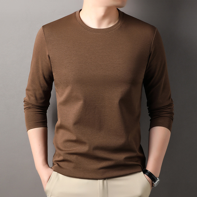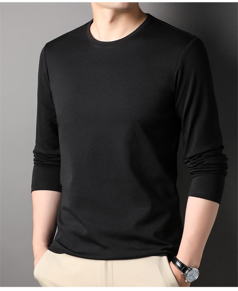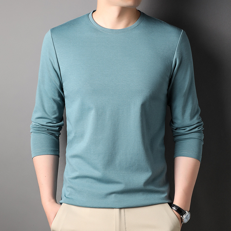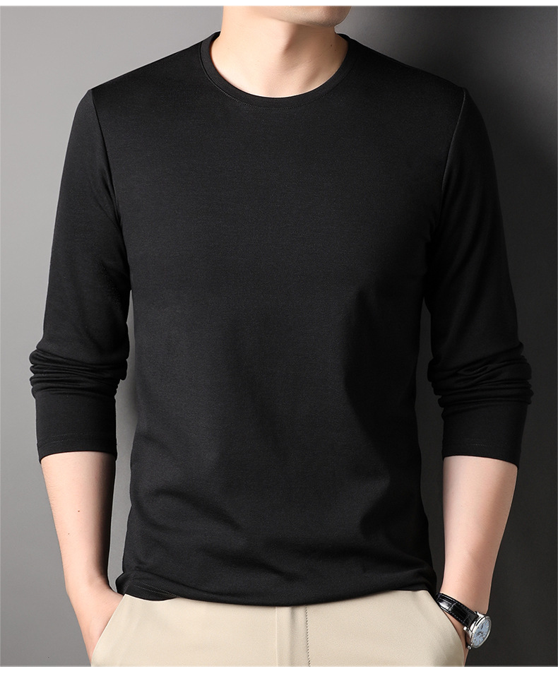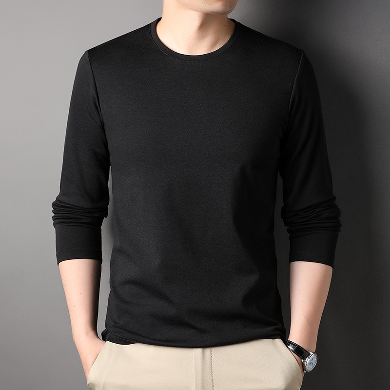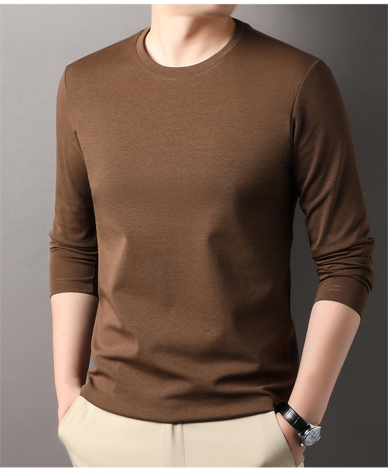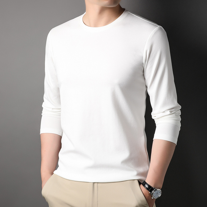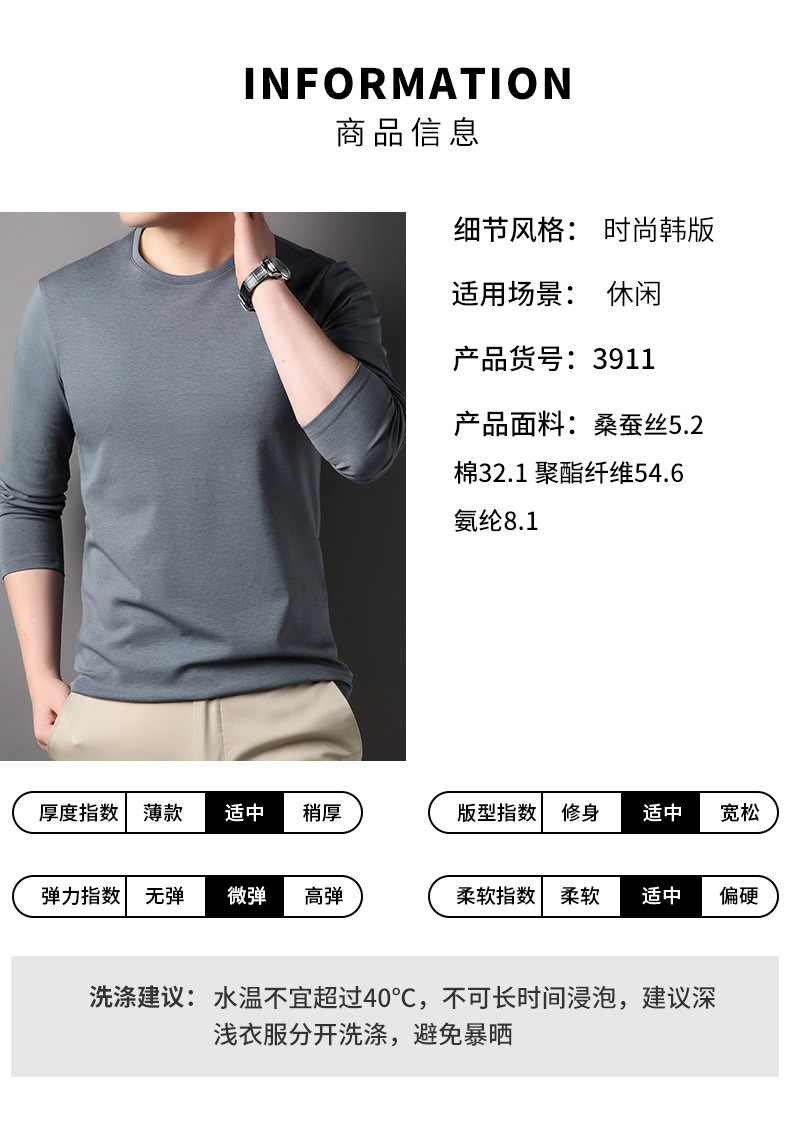 2024 년 가을 남성 중년 및 청소년 남성용 스위트 셔츠 캐주얼 씬 탑 티셔츠를위한 뽕나무 실크가 포함 된 새로운 긴팔 티셔츠