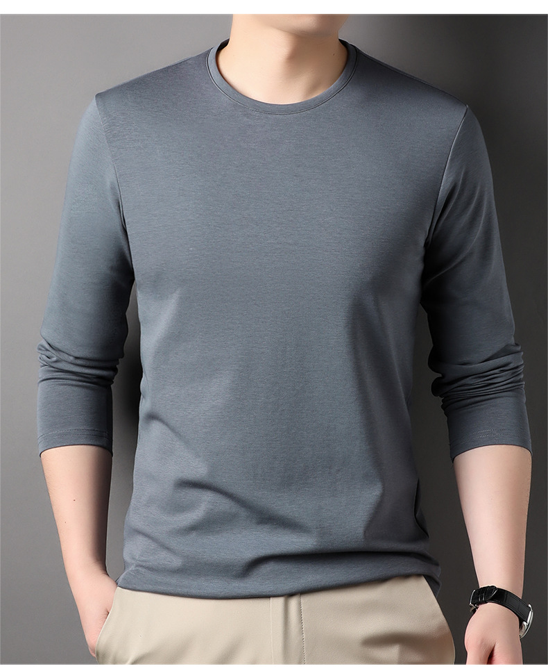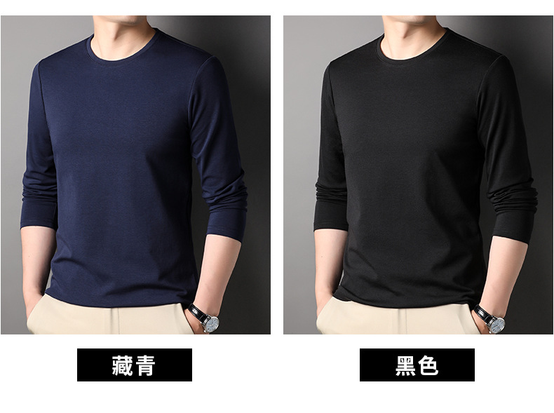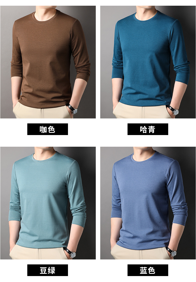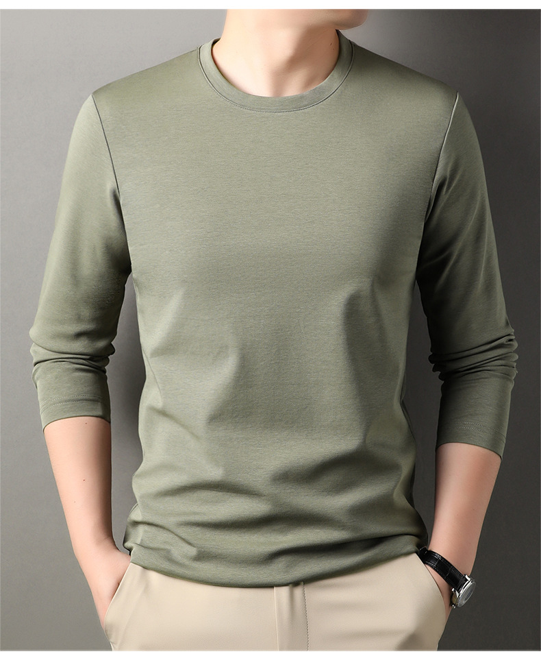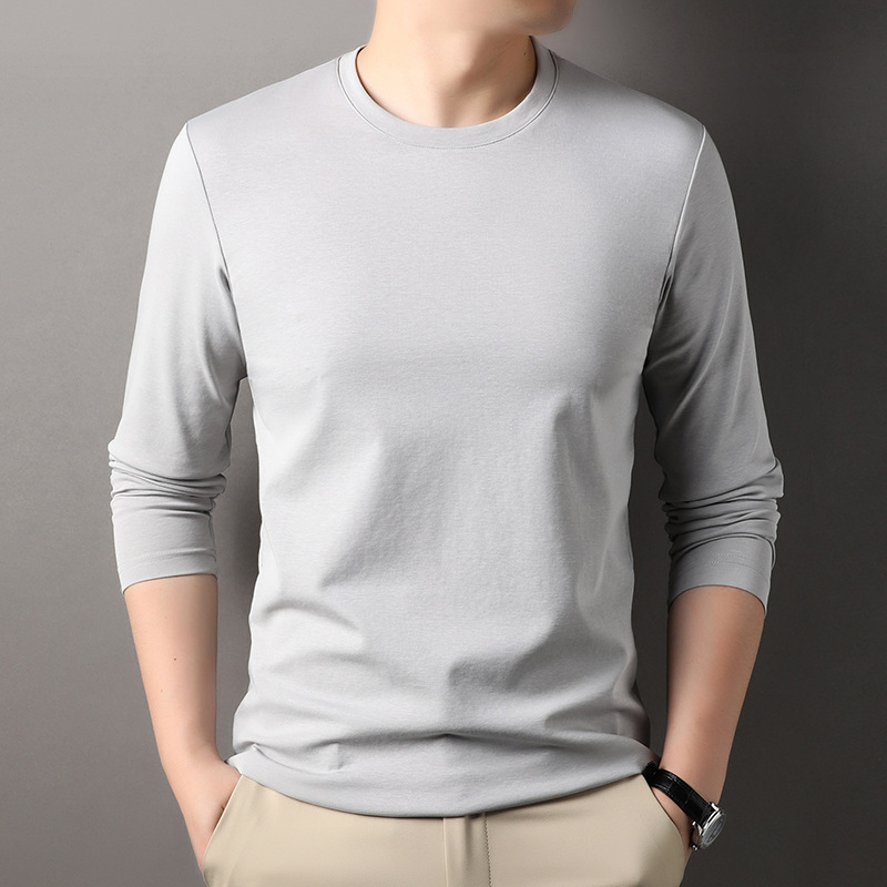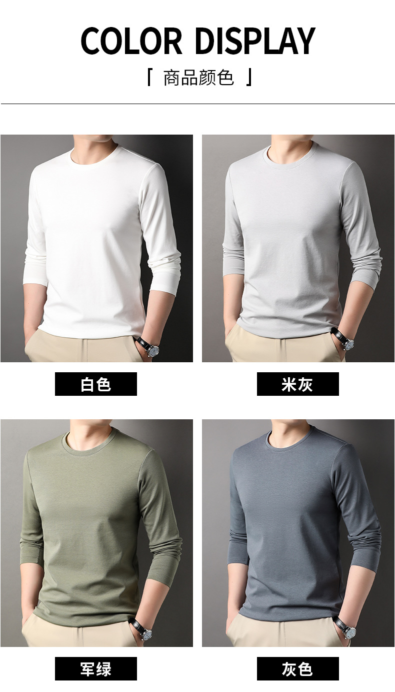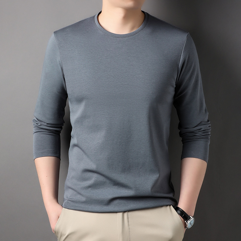 2024 년 가을 남성 중년 및 청소년 남성용 스위트 셔츠 캐주얼 씬 탑 티셔츠를위한 뽕나무 실크가 포함 된 새로운 긴팔 티셔츠