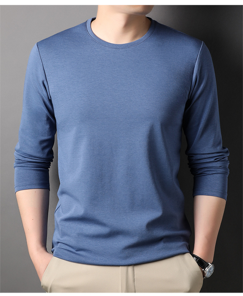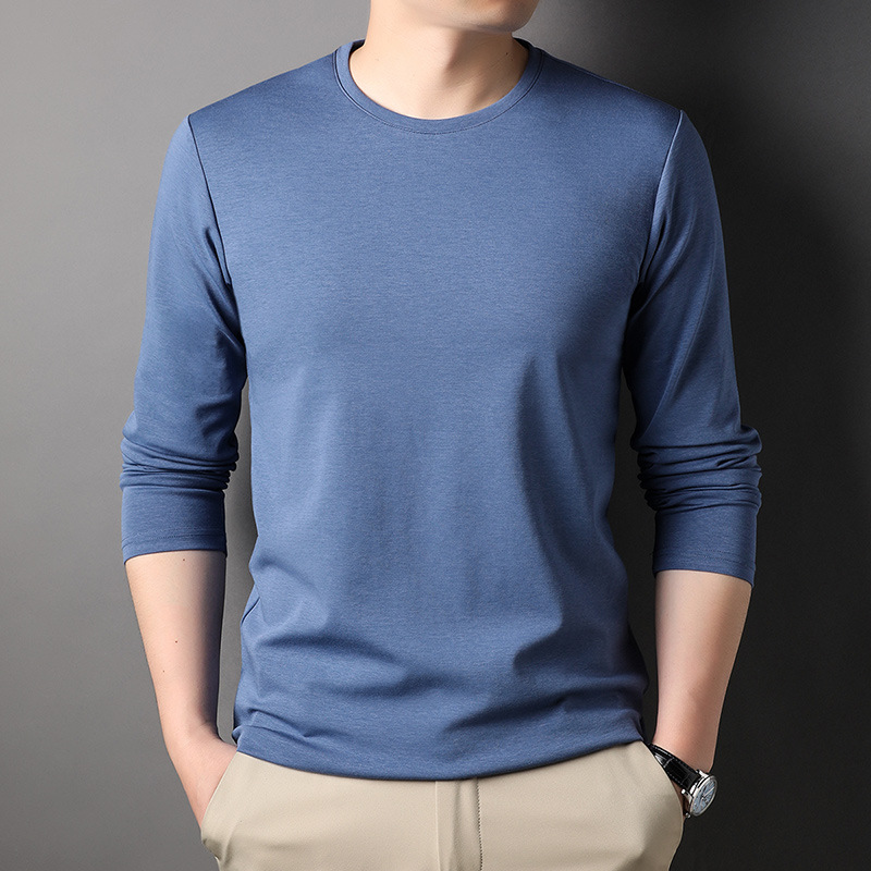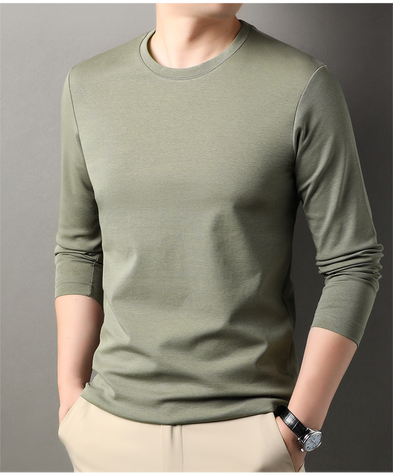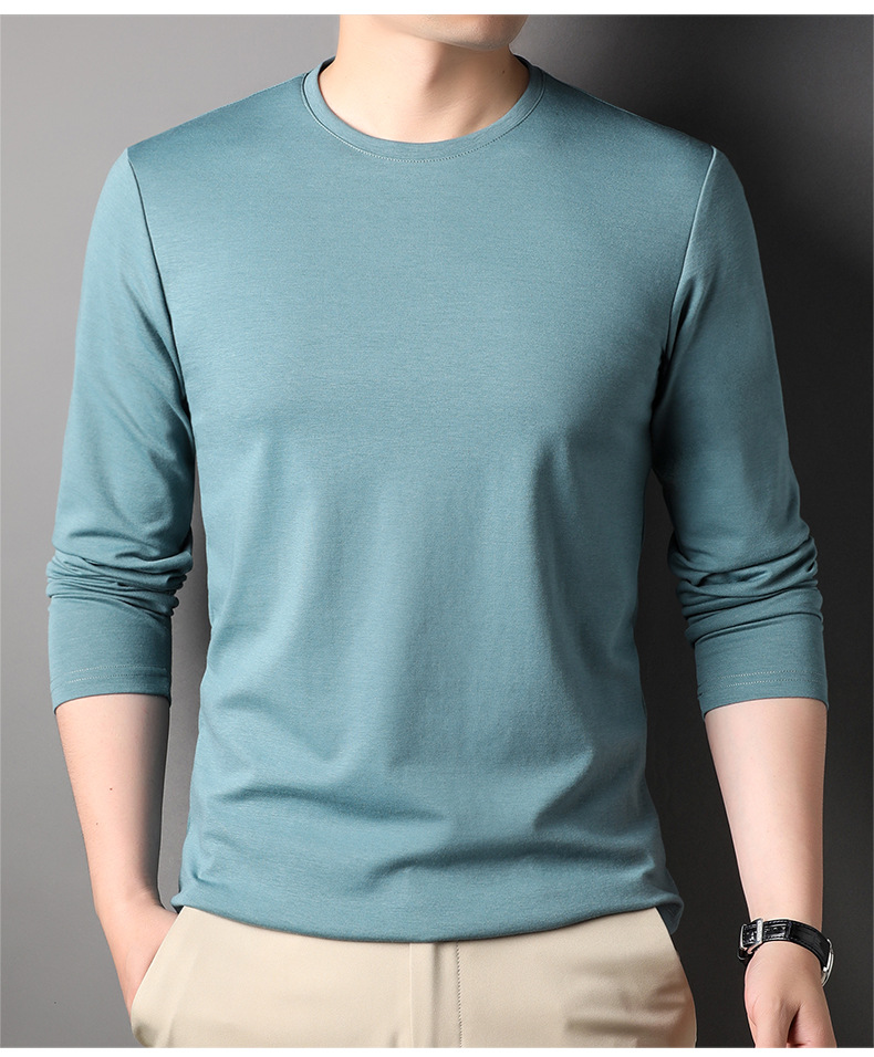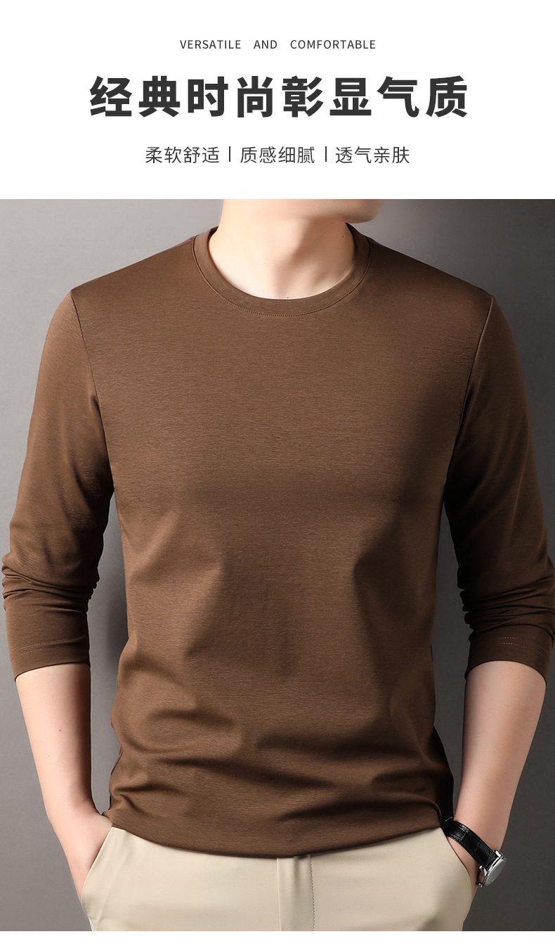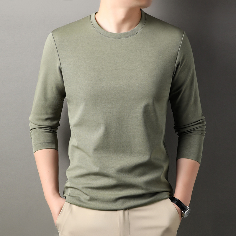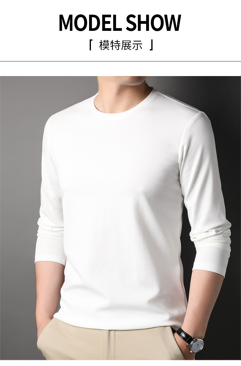 2024 년 가을 남성 중년 및 청소년 남성용 스위트 셔츠 캐주얼 씬 탑 티셔츠를위한 뽕나무 실크가 포함 된 새로운 긴팔 티셔츠