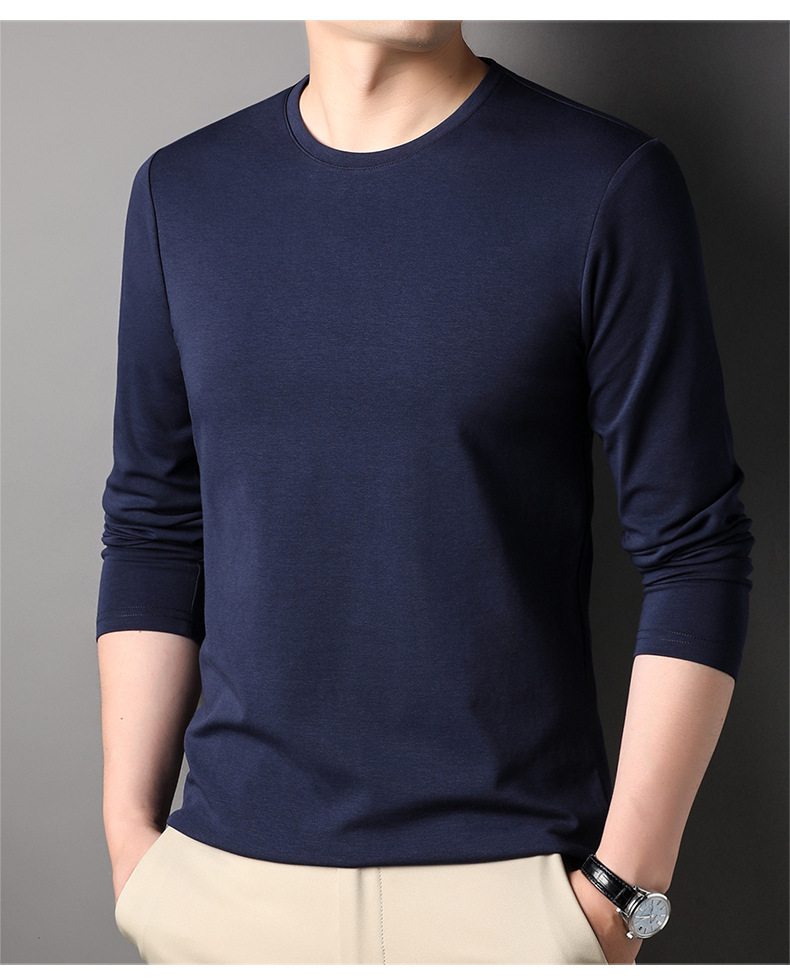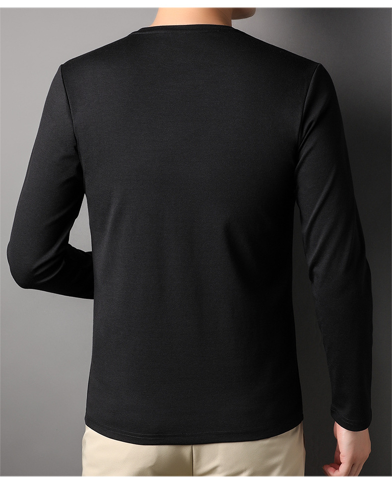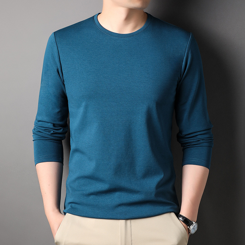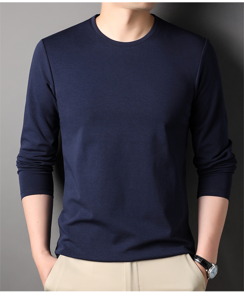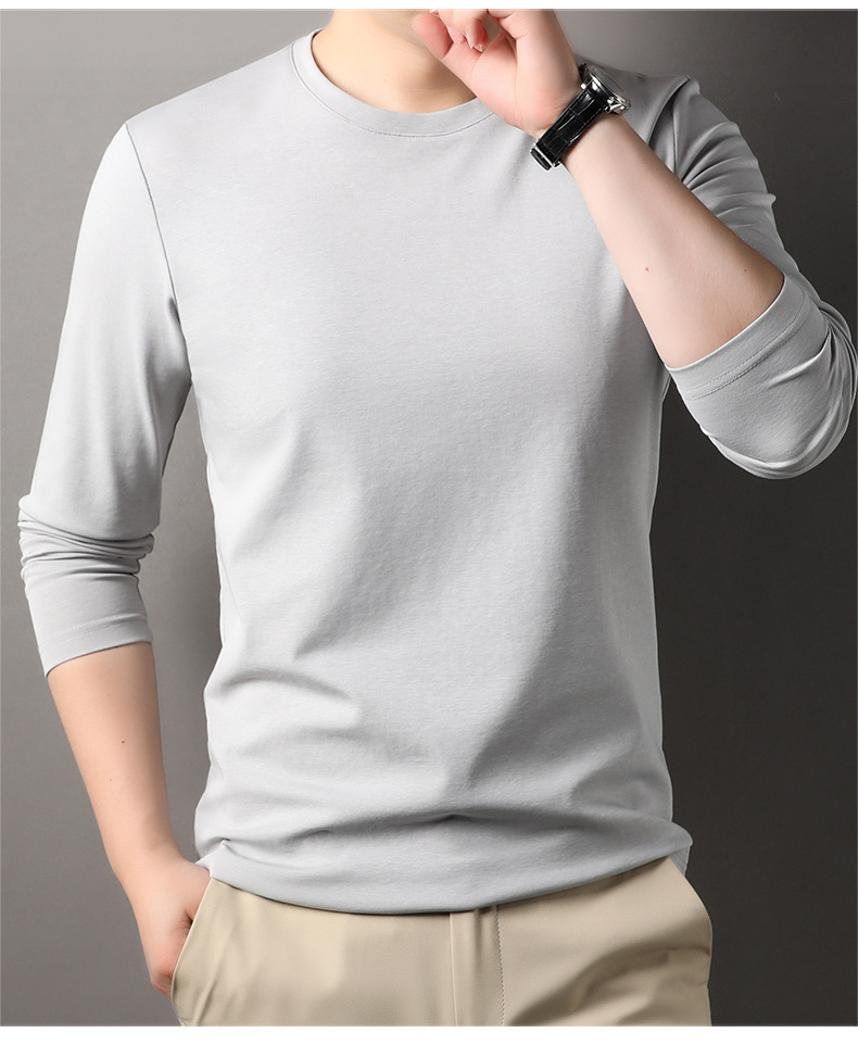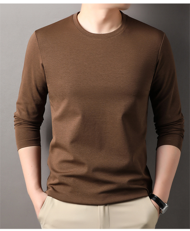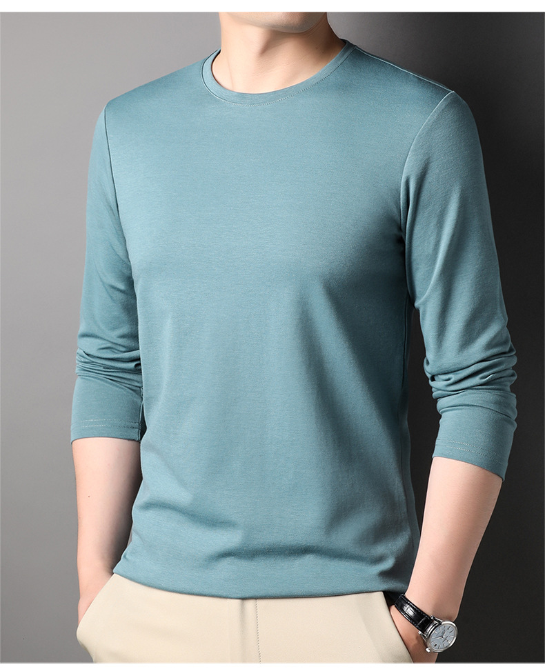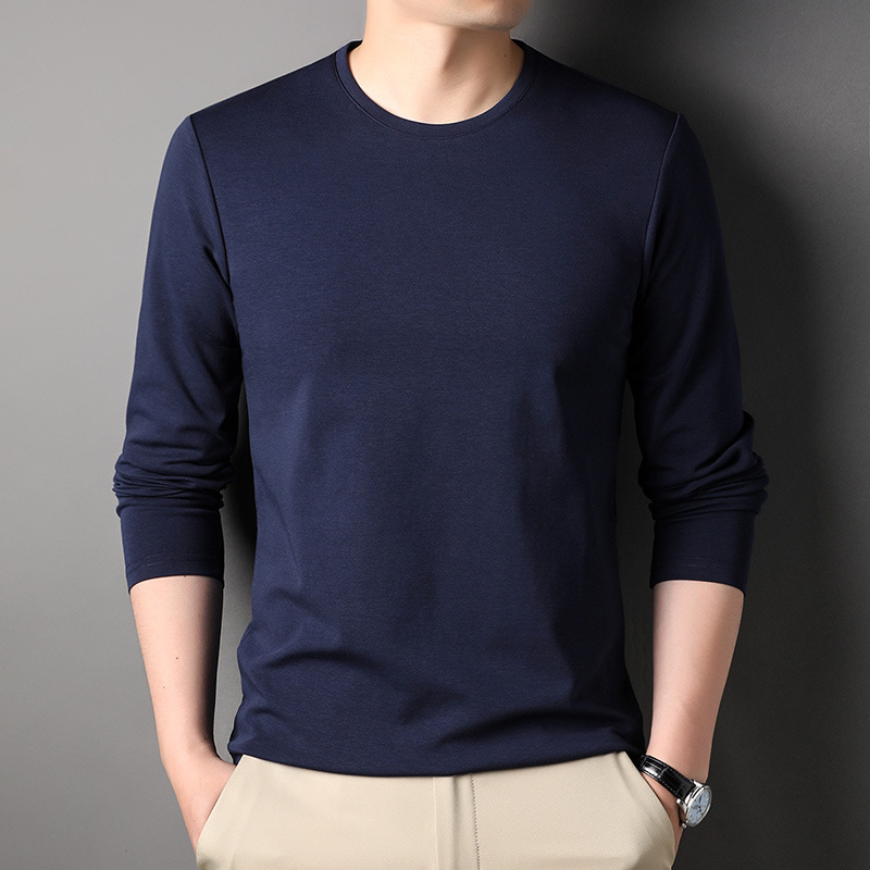 2024 년 가을 남성 중년 및 청소년 남성용 스위트 셔츠 캐주얼 씬 탑 티셔츠를위한 뽕나무 실크가 포함 된 새로운 긴팔 티셔츠