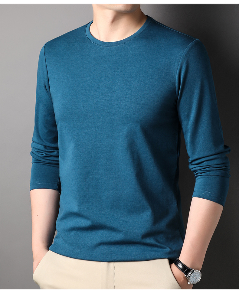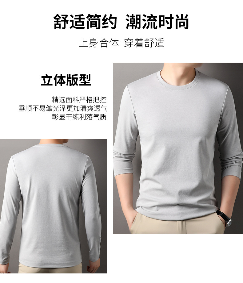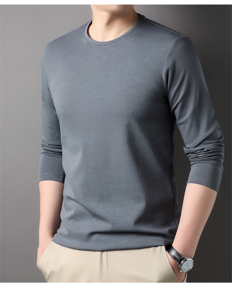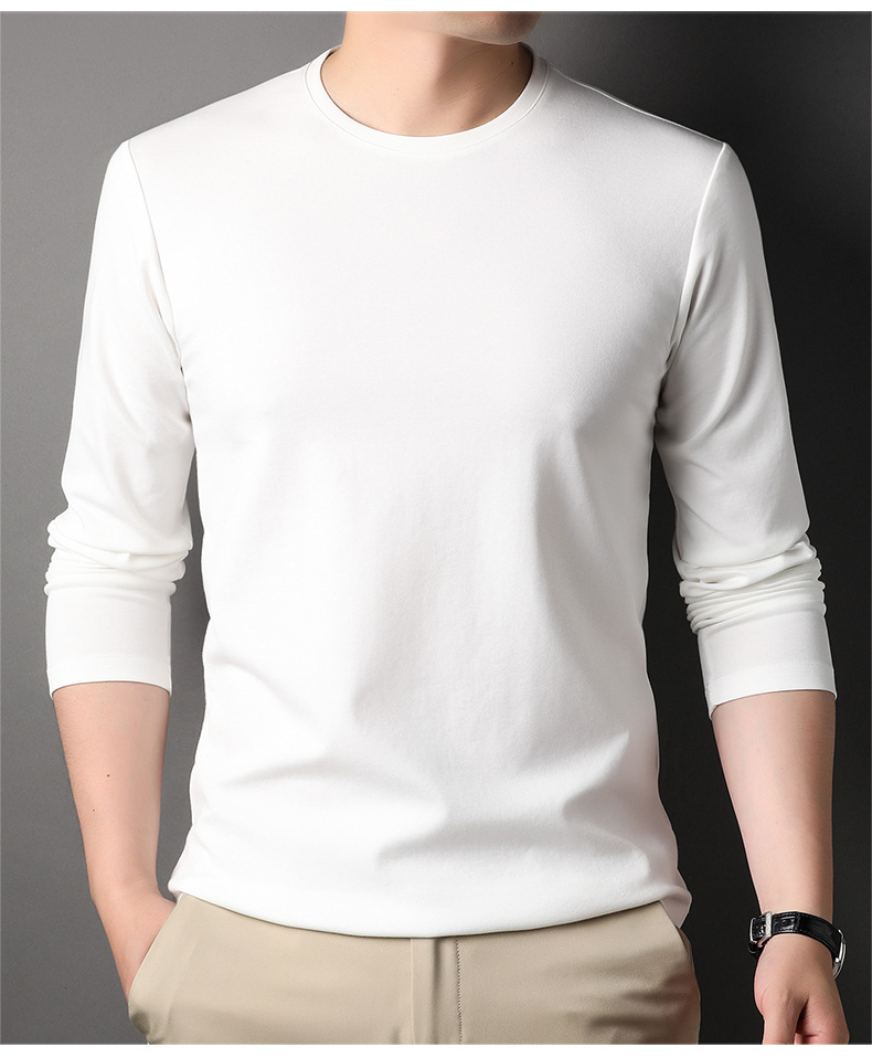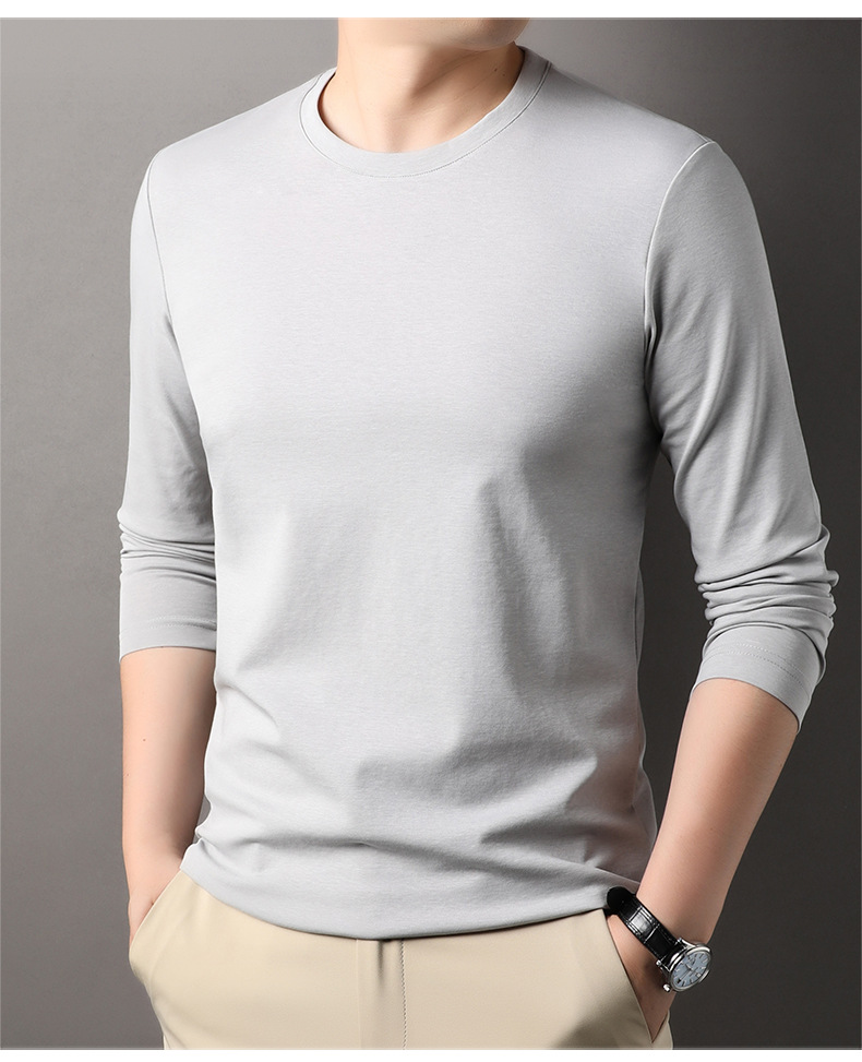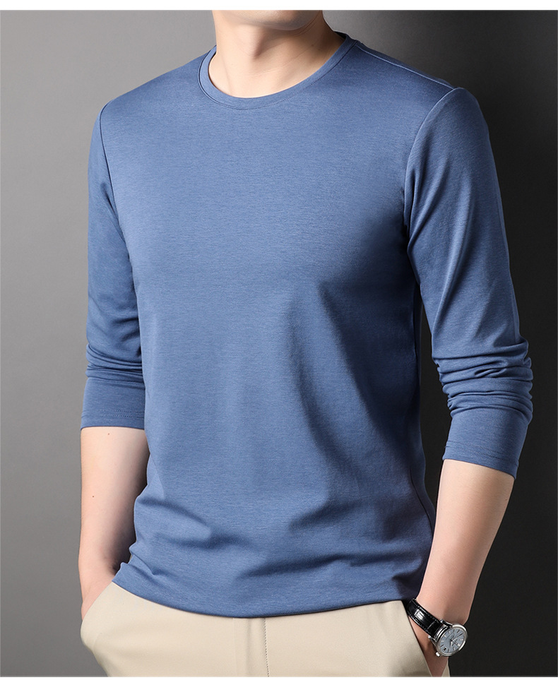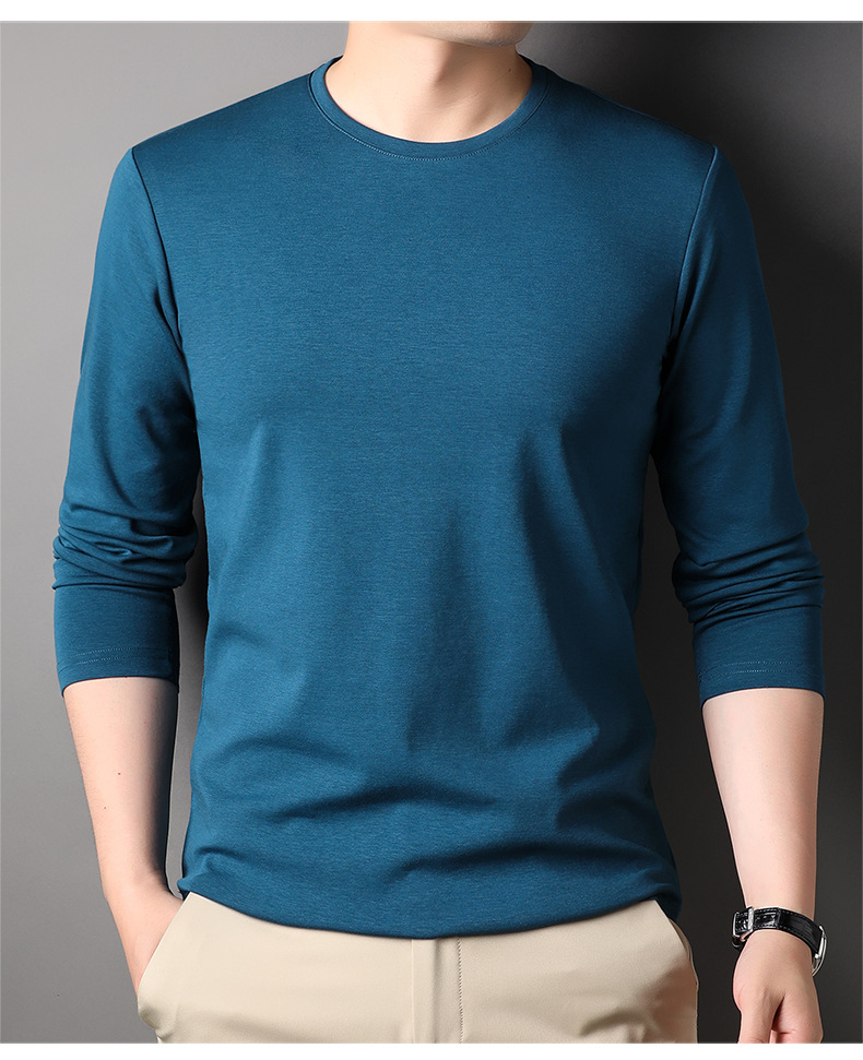 2024 년 가을 남성 중년 및 청소년 남성용 스위트 셔츠 캐주얼 씬 탑 티셔츠를위한 뽕나무 실크가 포함 된 새로운 긴팔 티셔츠