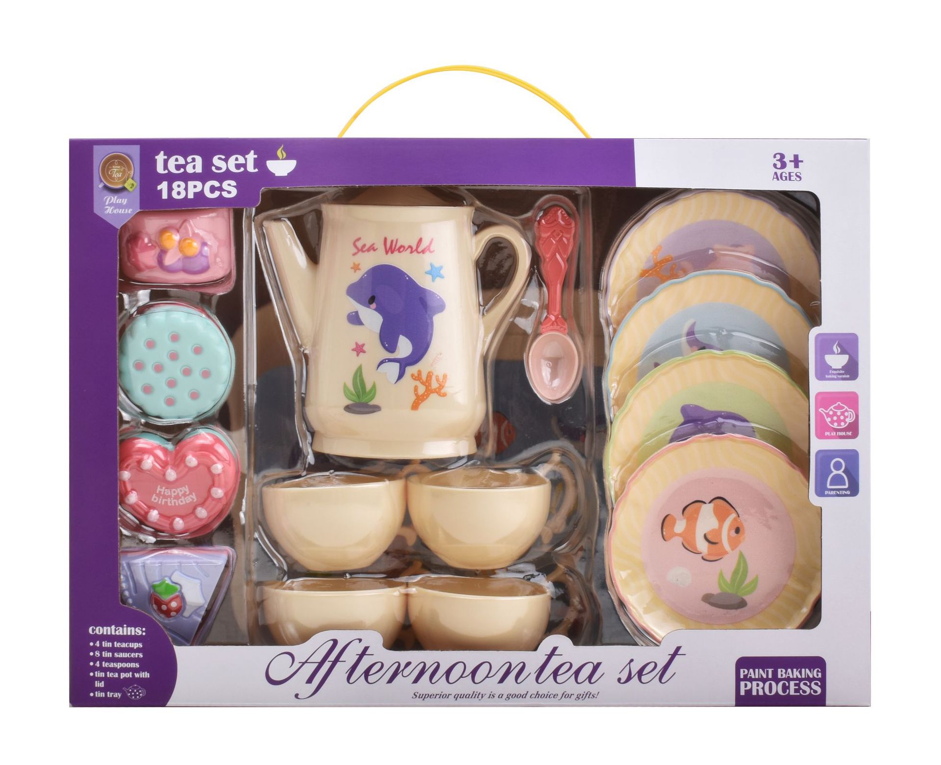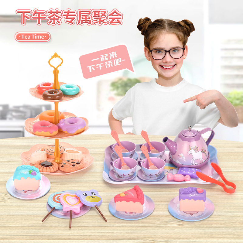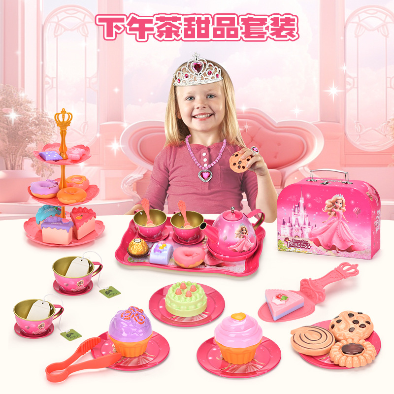 국경 간 폭발 어린이 틴플레이트 티 브레이크 애프터눈 티 플레이 홈 소녀 시뮬레이션 영국 주전자 세트 장난감스토어 가기