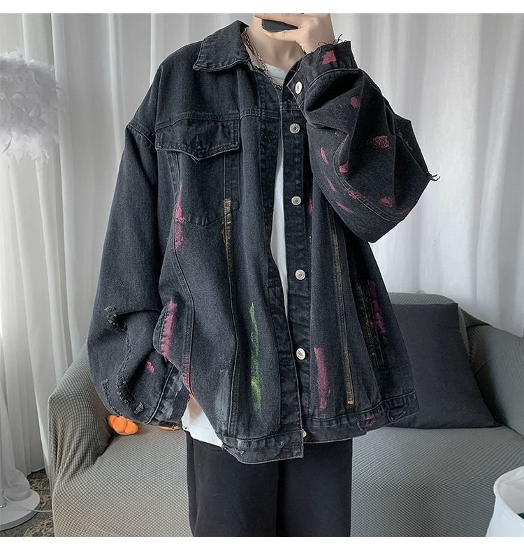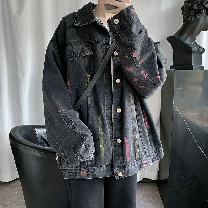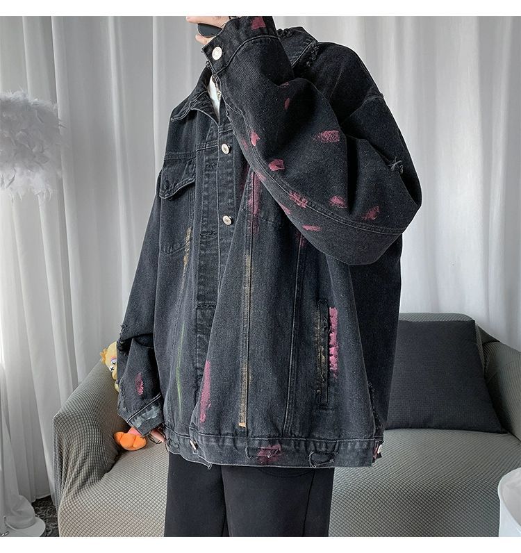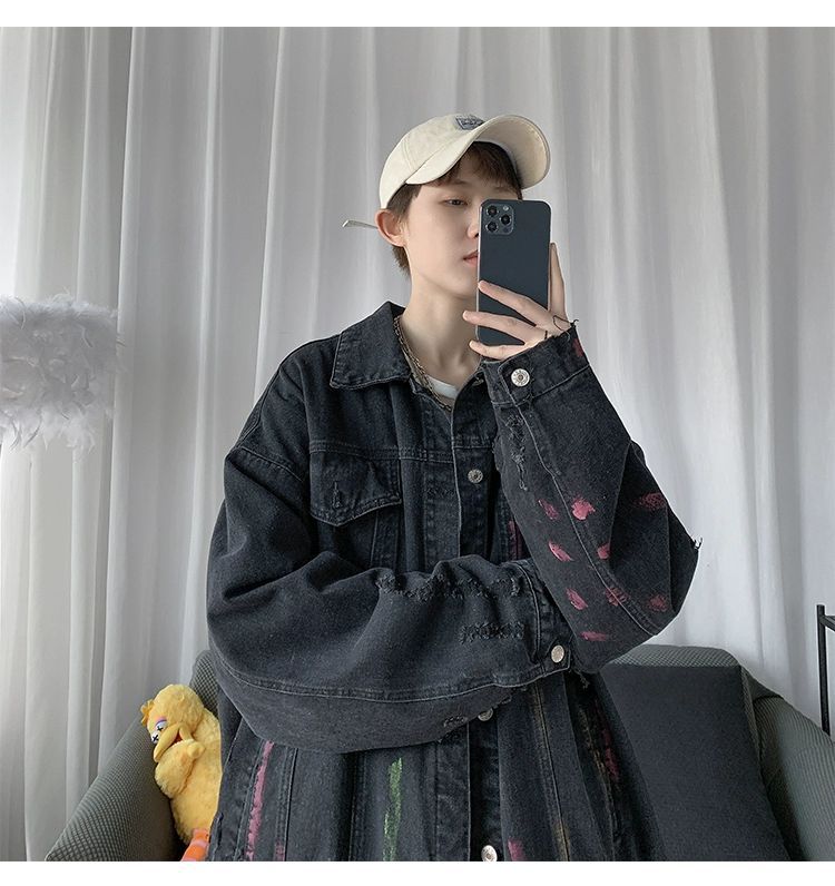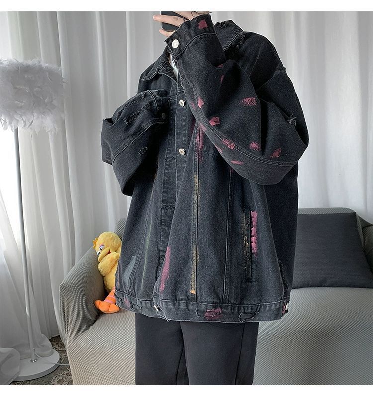찢어진 데님 재킷 남자 봄 유행 브랜드 인 홍콩 스타일 하이 엔드 의류 봄과 가을 트렌디 루즈 캐주얼 자켓스토어 가기