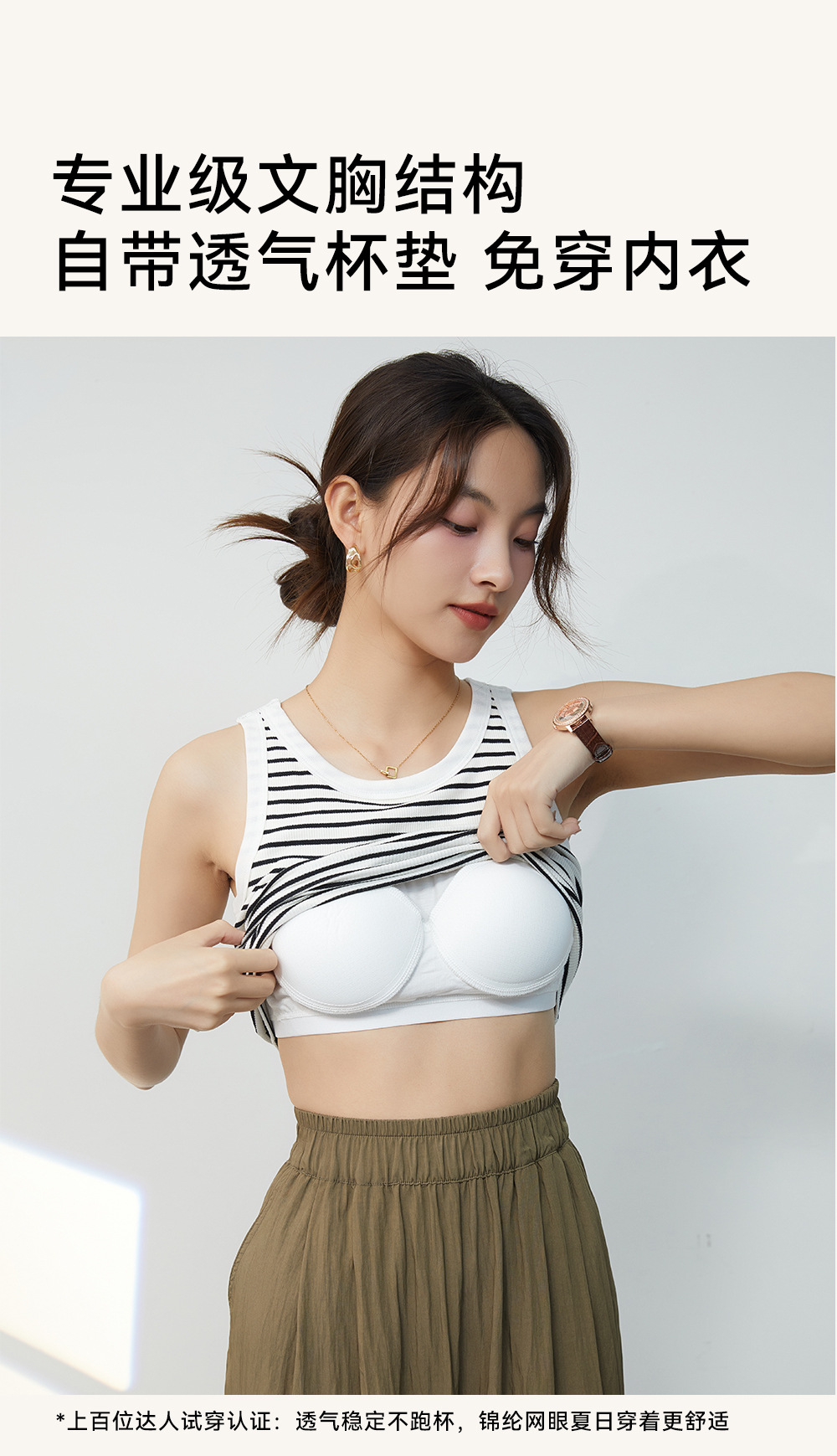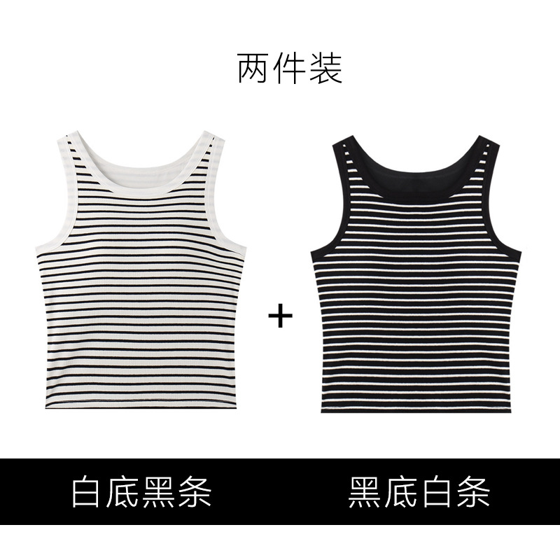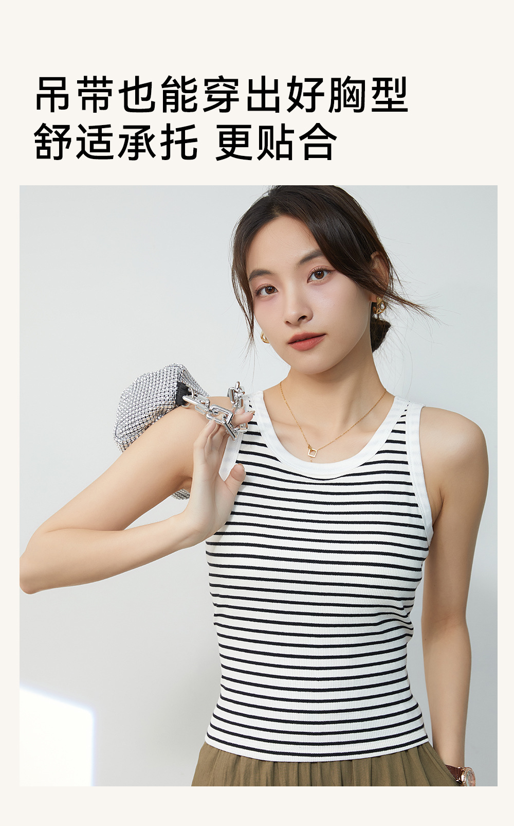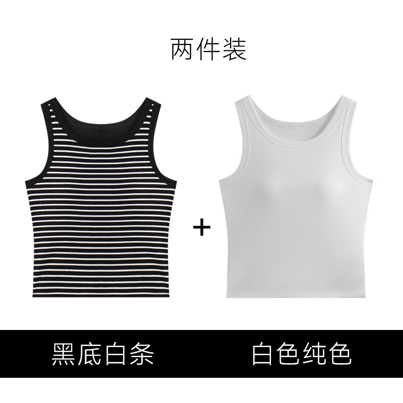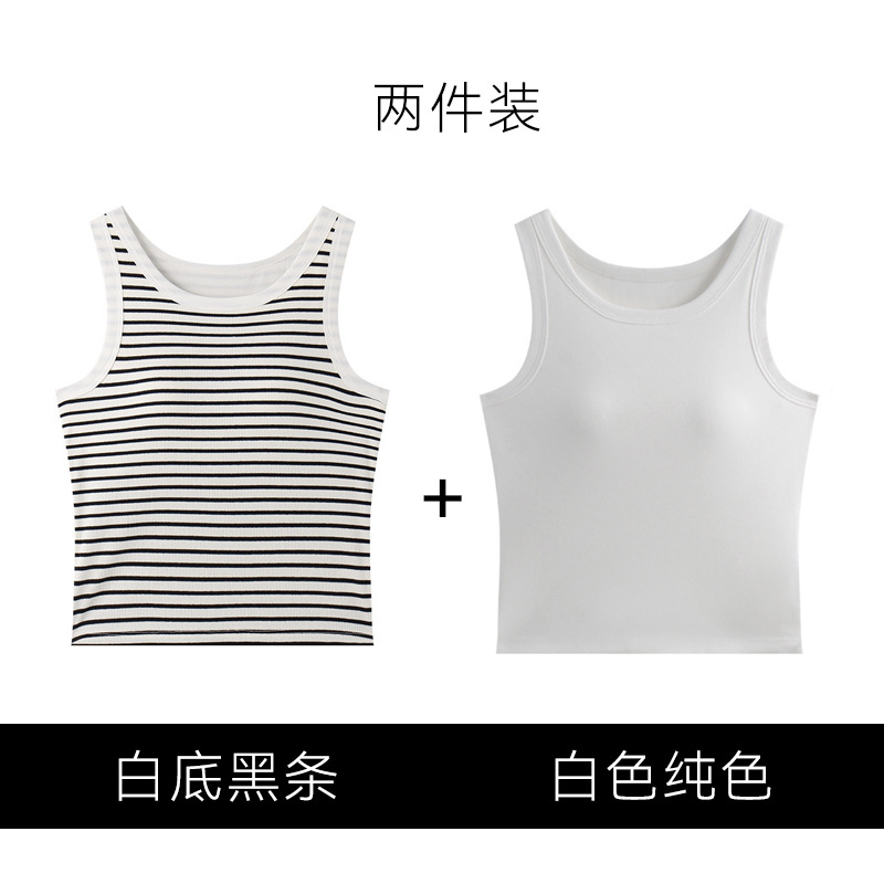 새로운 스타일 줄무늬 조끼 여자 속옷 가슴 패드 브래지어 외부 착용 원피스 코튼 슬링 내베이스 쇼트 탑스토어 가기
