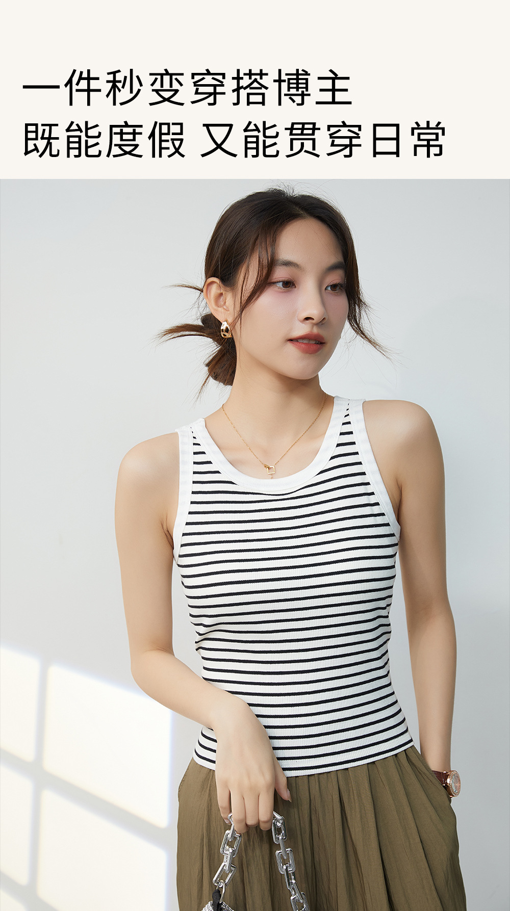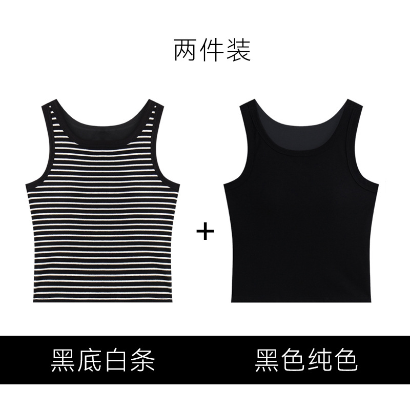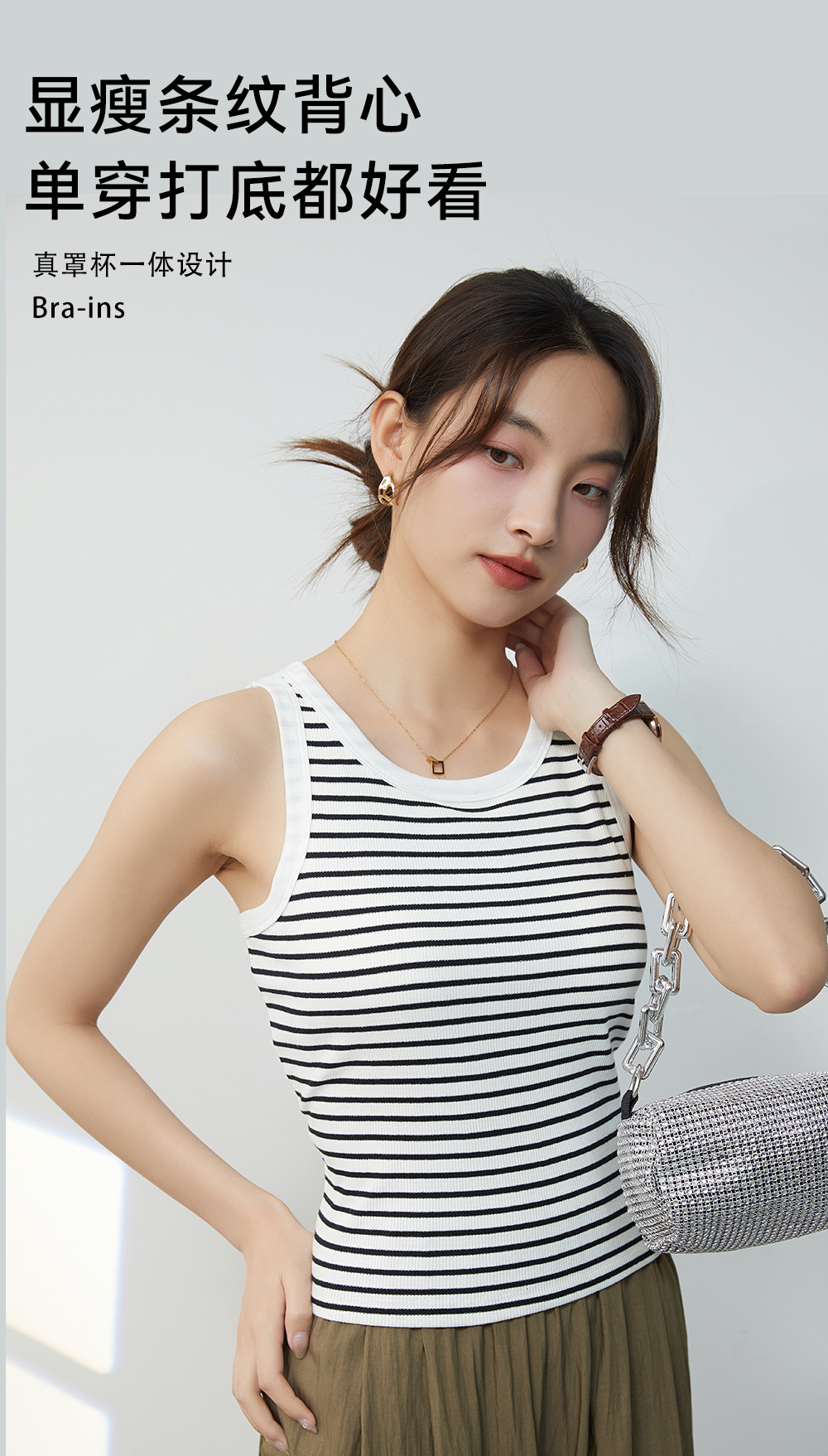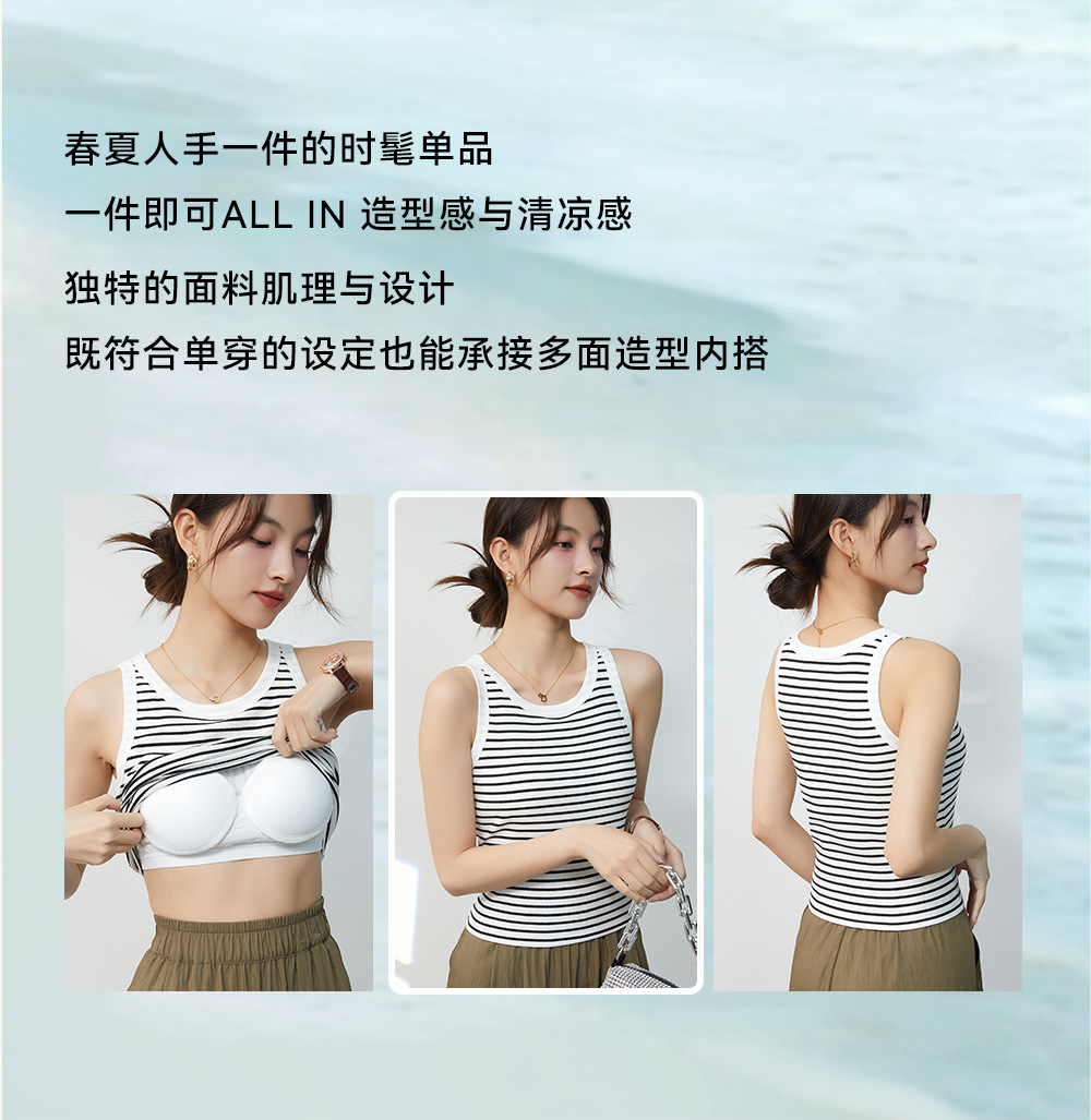 새로운 스타일 줄무늬 조끼 여자 속옷 가슴 패드 브래지어 외부 착용 원피스 코튼 슬링 내베이스 쇼트 탑스토어 가기