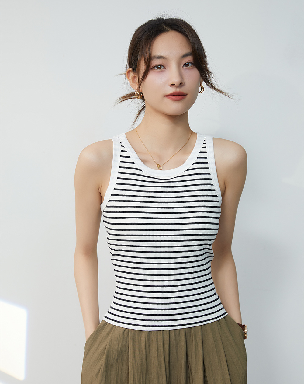 새로운 스타일 줄무늬 조끼 여자 속옷 가슴 패드 브래지어 외부 착용 원피스 코튼 슬링 내베이스 쇼트 탑
