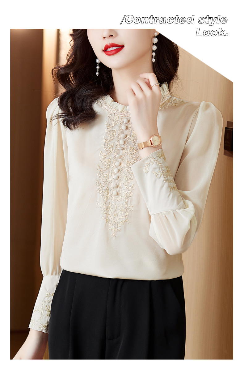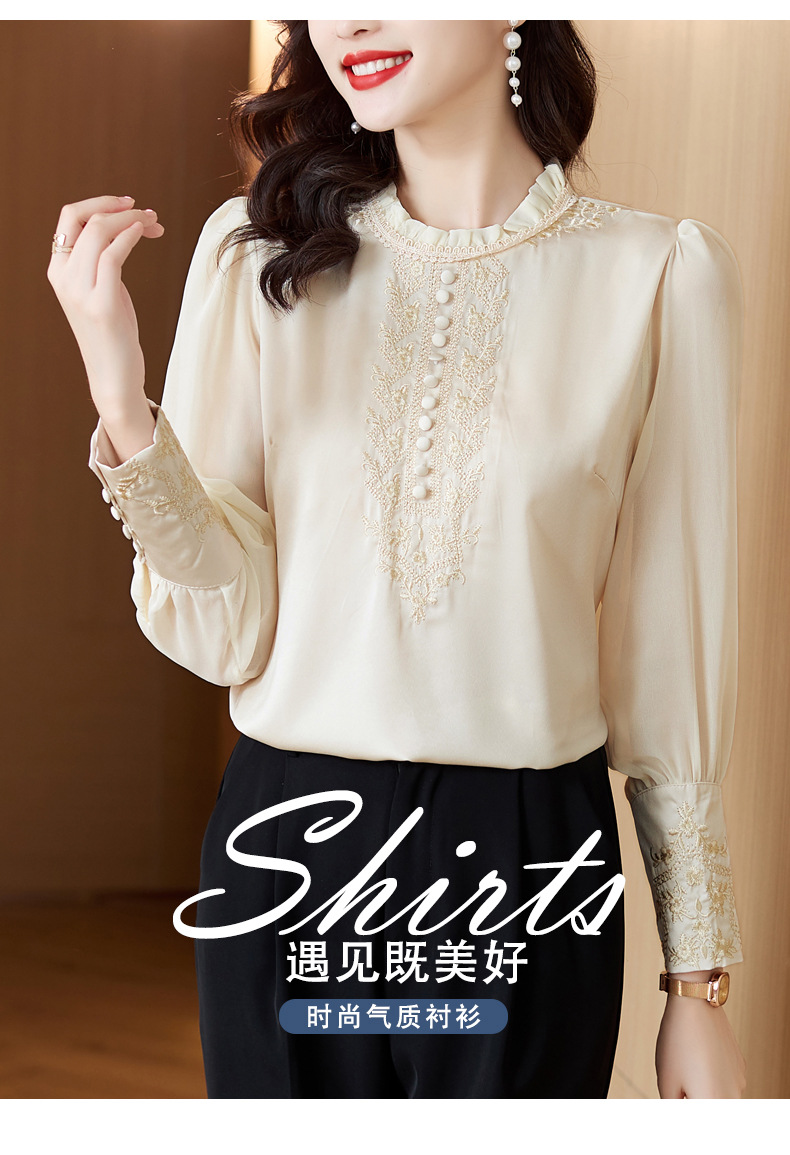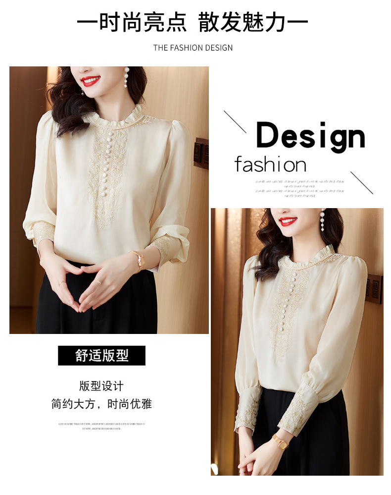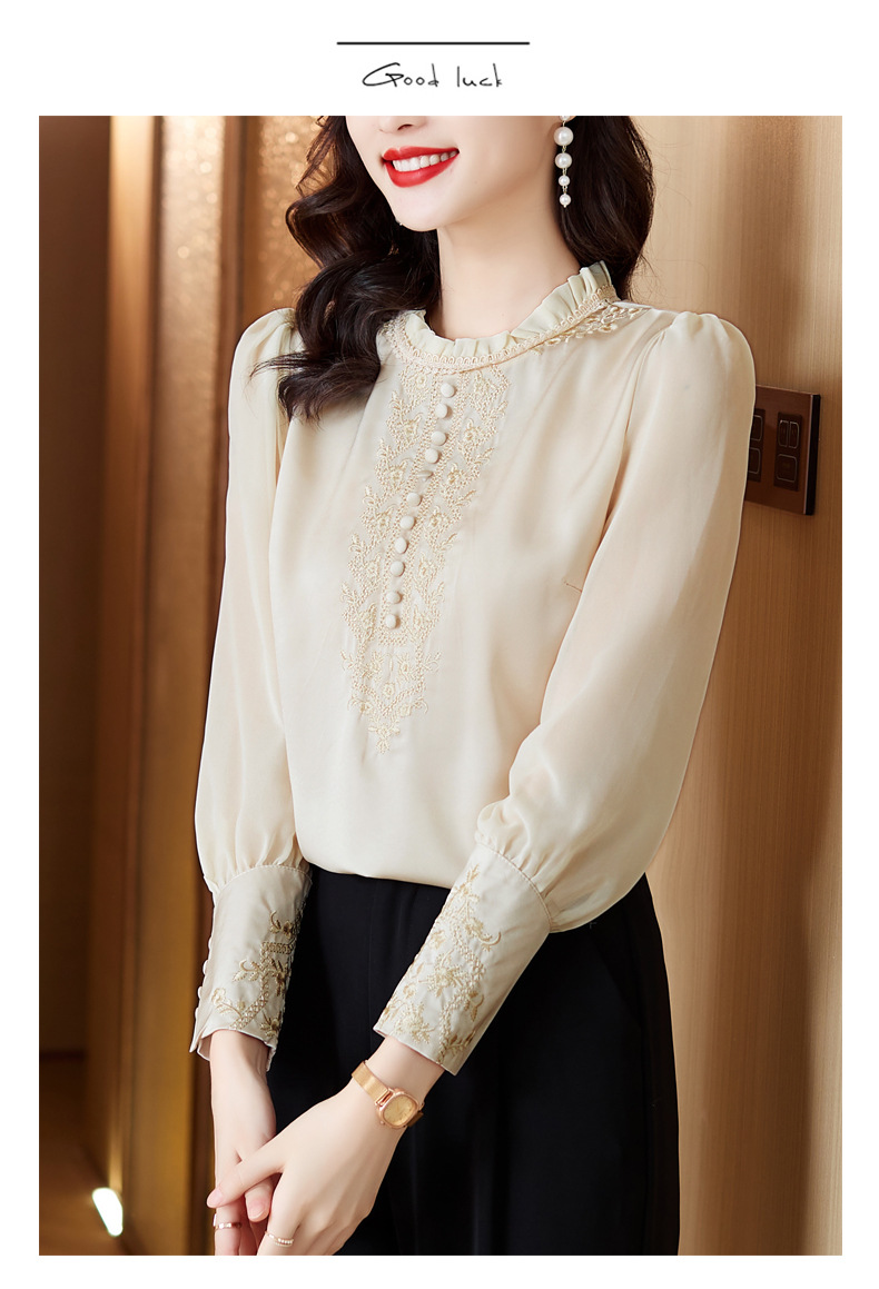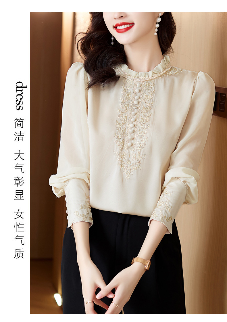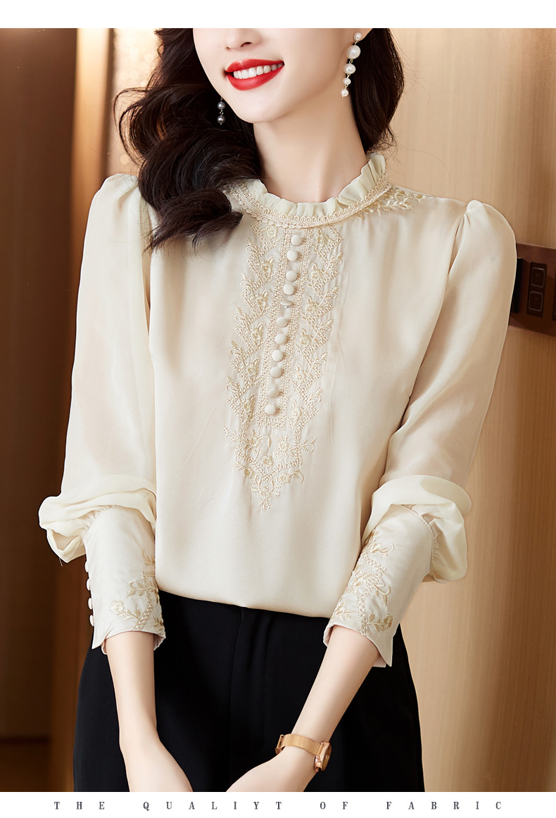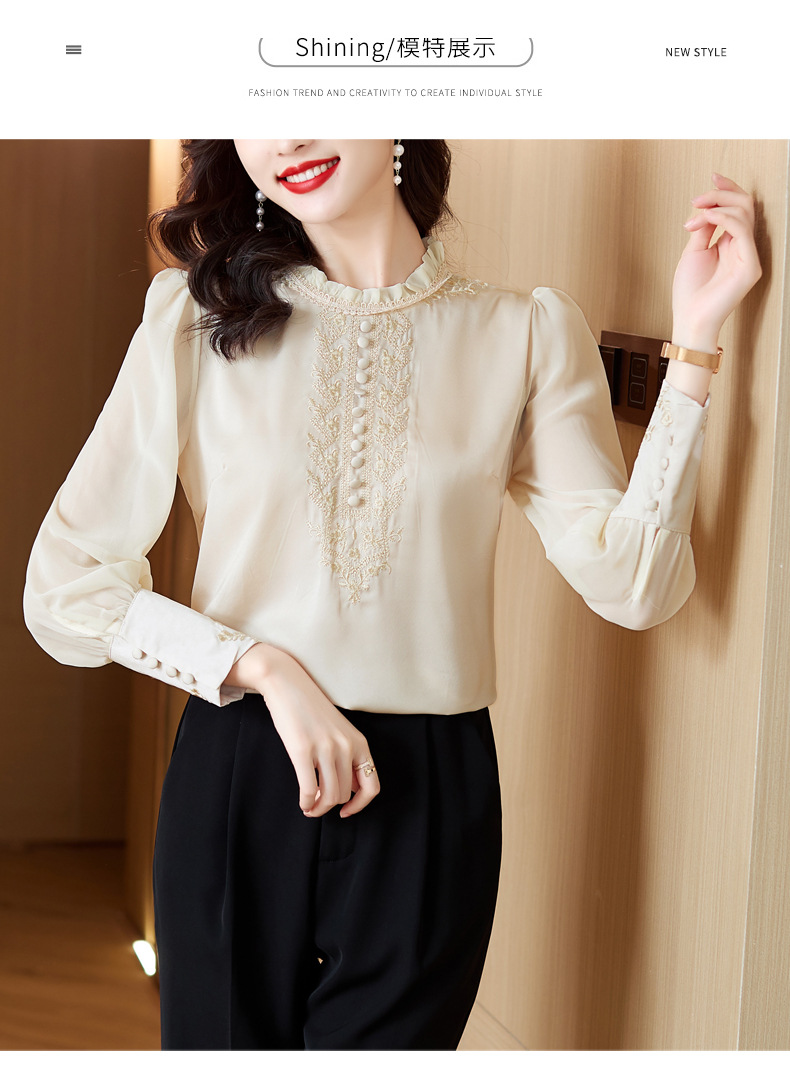 실제 촬영 셔츠 여성용 봄 신상품 러플 칼라 긴팔 고급 자수 상의스토어 가기