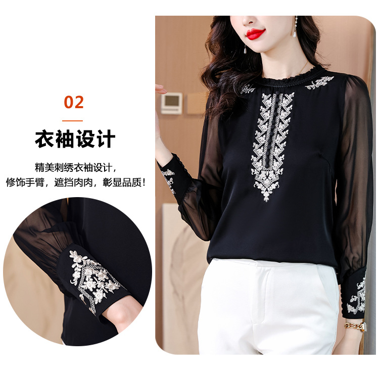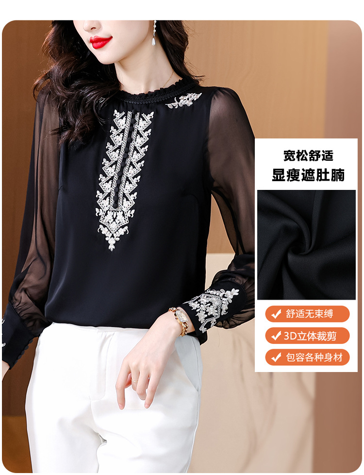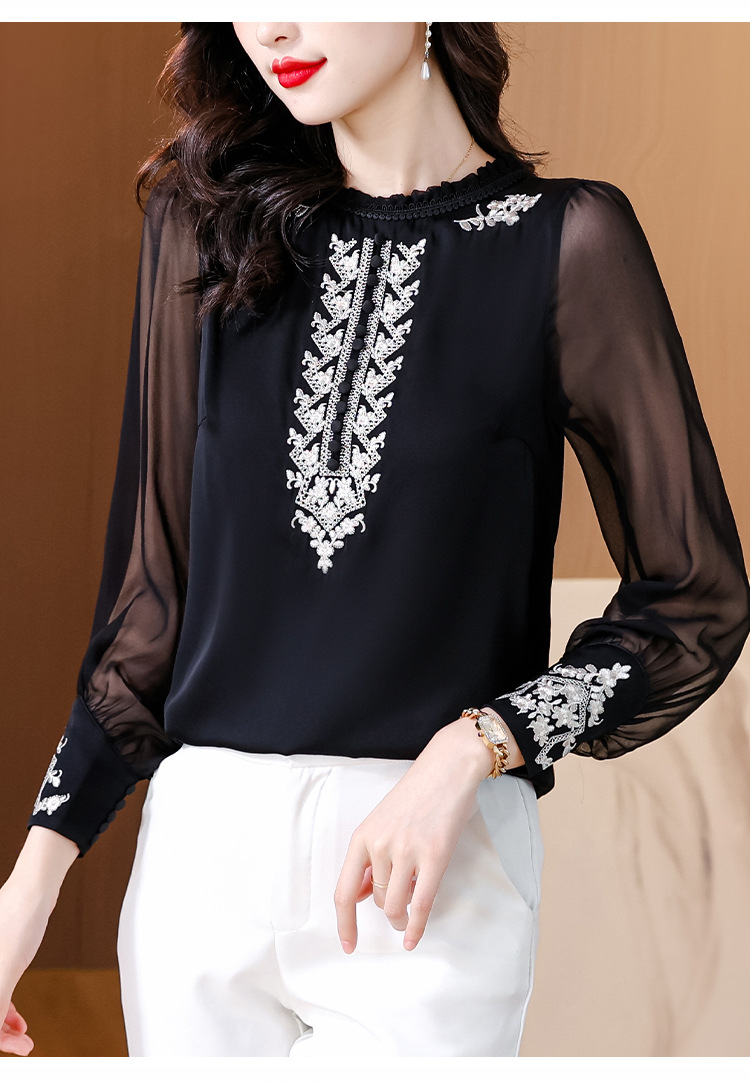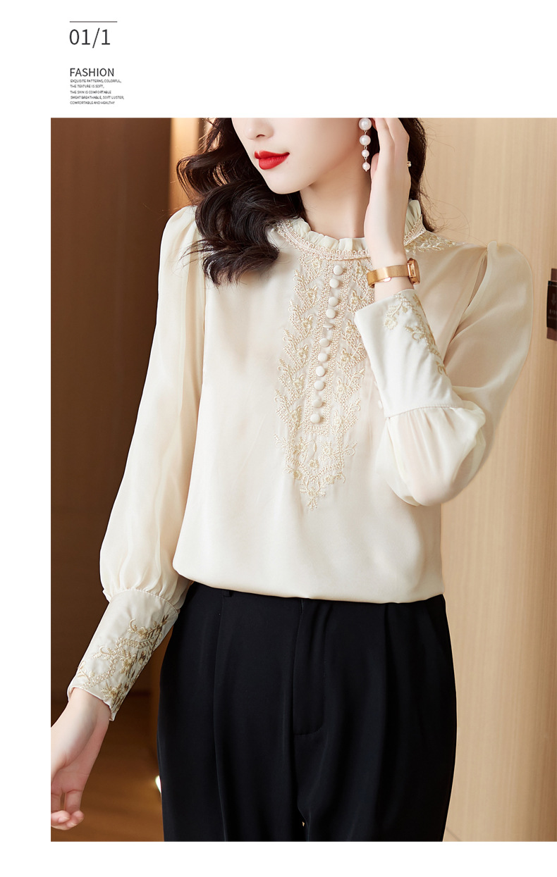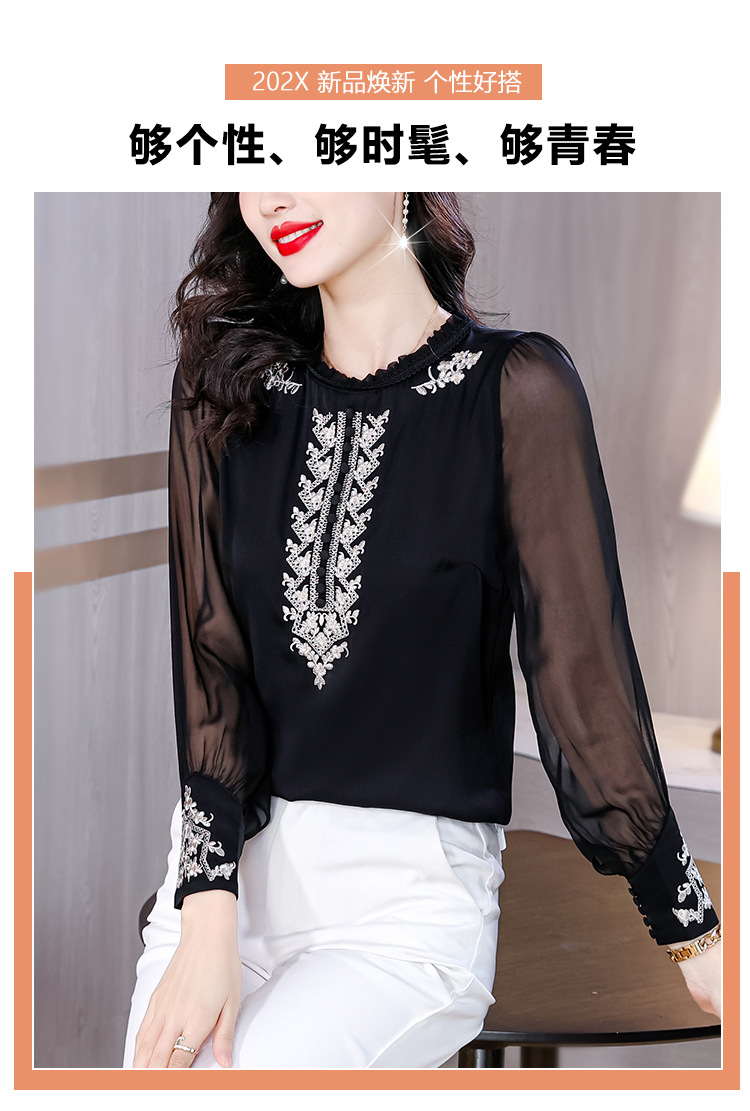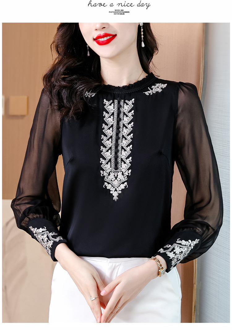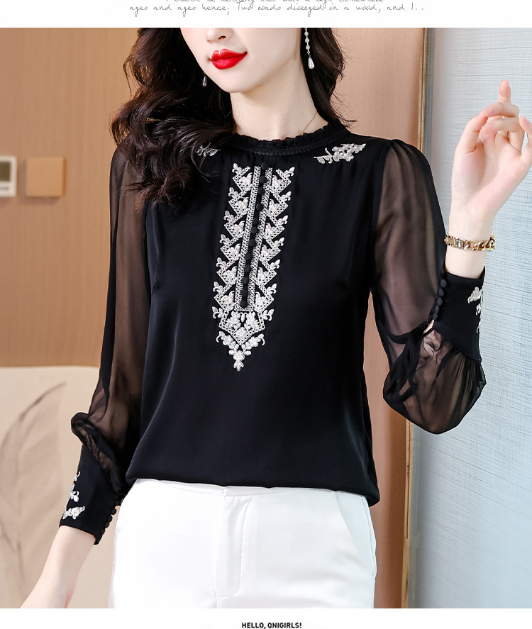 실제 촬영 셔츠 여성용 봄 신상품 러플 칼라 긴팔 고급 자수 상의스토어 가기