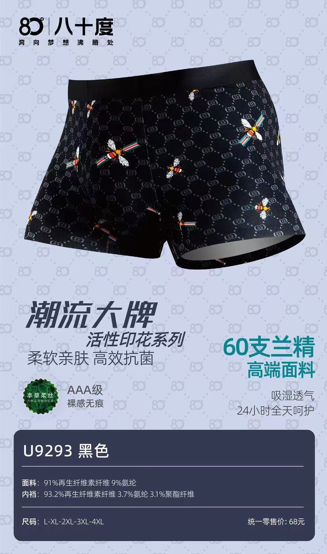 80 도 60 Lanjing modal 남성의 원활한 속옷 하이 엔드 인쇄 매력적인 남성 허리 복서 바지스토어 가기