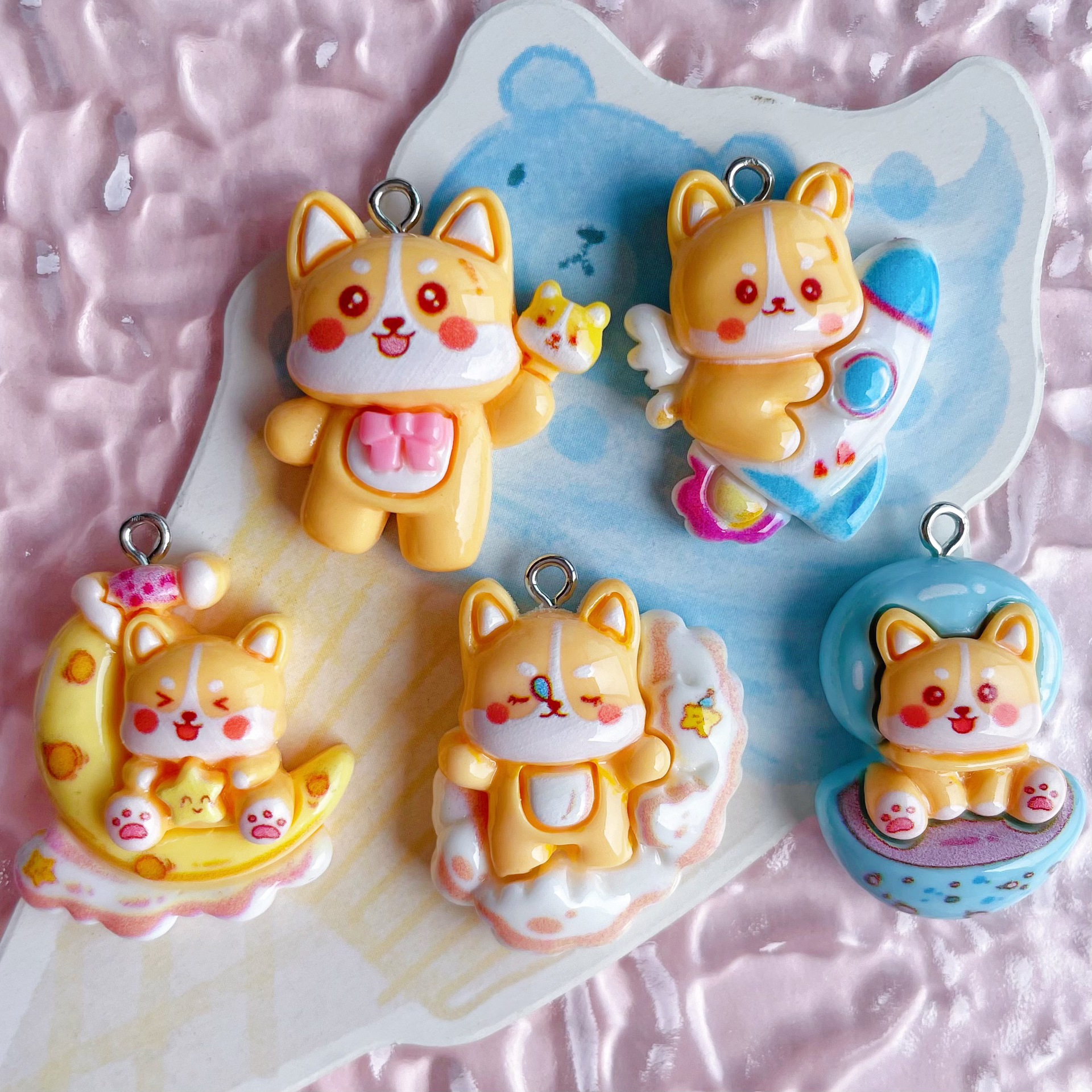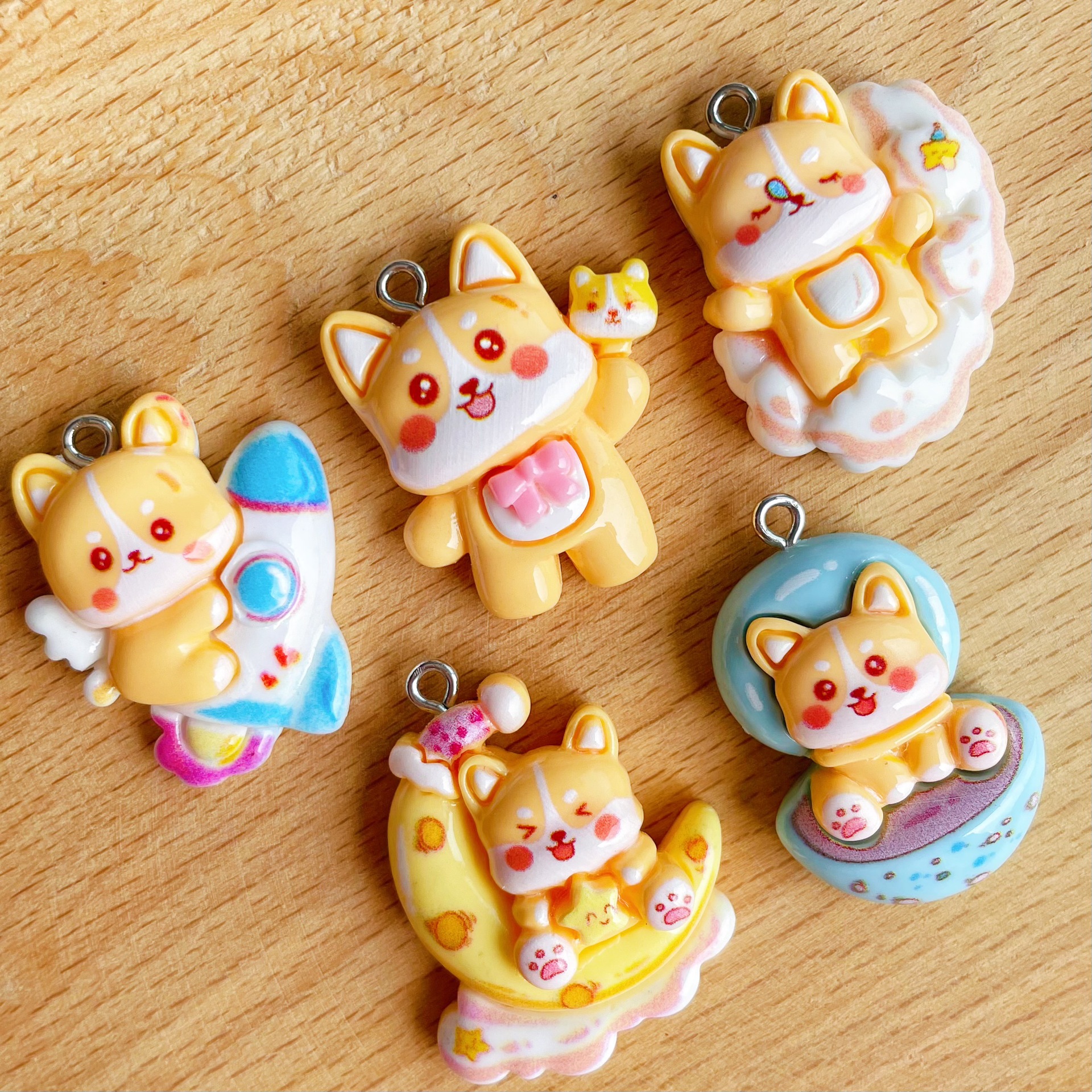 귀여운 동물 우주선 강아지 만화 수지 액세서리 DIY 보석 펜던트 펜던트 키 체인 펜던트 소재