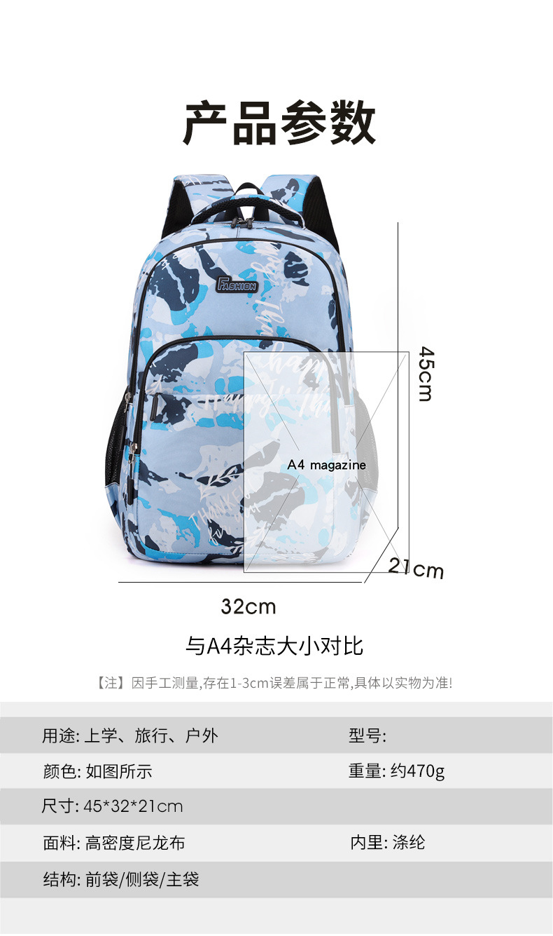 잘 생긴 고등학교 초등학교 학생 책가방 소년 3 ~ 6 학년 대용량 청소년 위장 배낭 여성