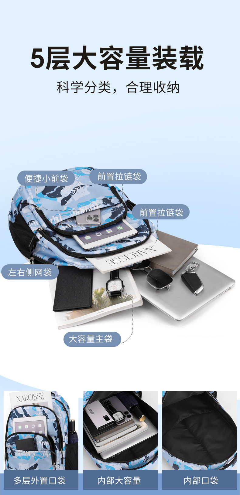 잘 생긴 고등학교 초등학교 학생 책가방 소년 3 ~ 6 학년 대용량 청소년 위장 배낭 여성스토어 가기