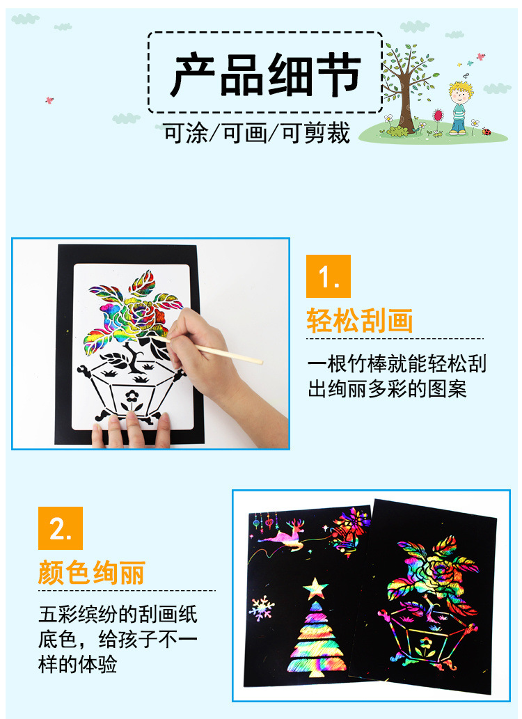 어린이 긁는 종이 100 A4 긁는 종이 8 다채로운 긁기 왁스 종이 유치원 긁는 종이 초등학생 긁기 종이스토어 가기