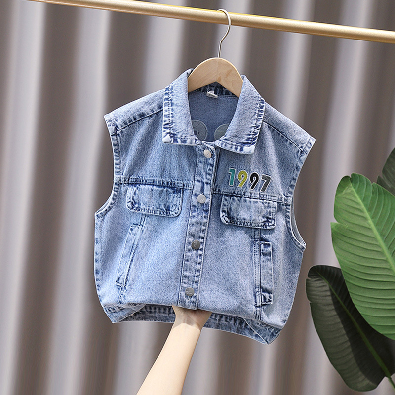 데님 조끼 소년의 봄과 가을 코트 2024 조끼리 중소형 어린이 탑 서양식 소년의 가을 새 조끼스토어 가기