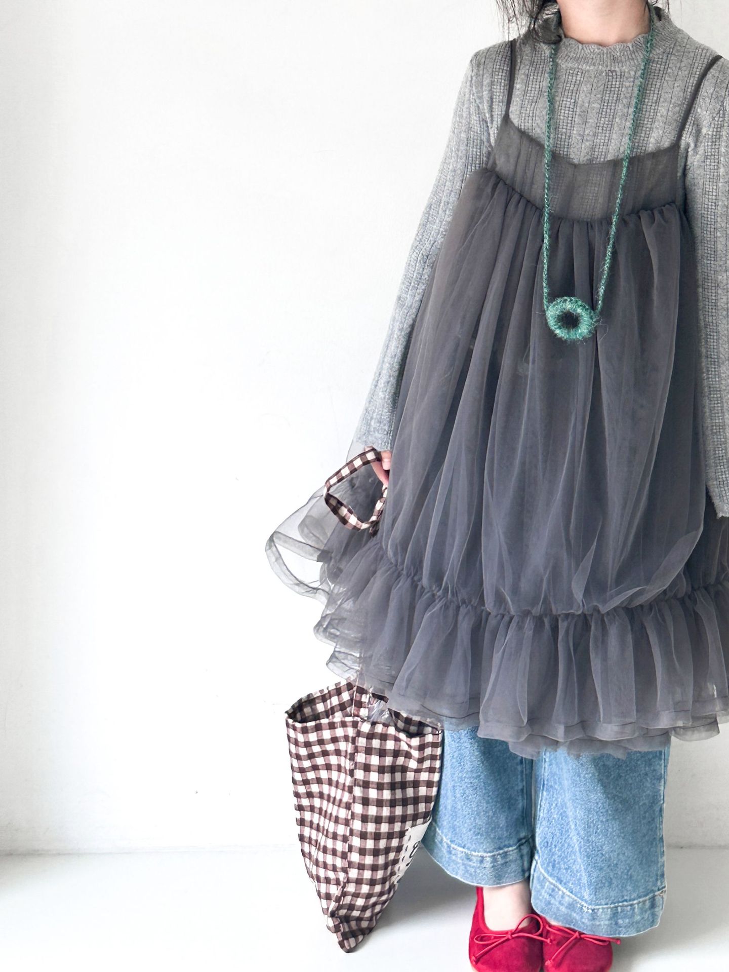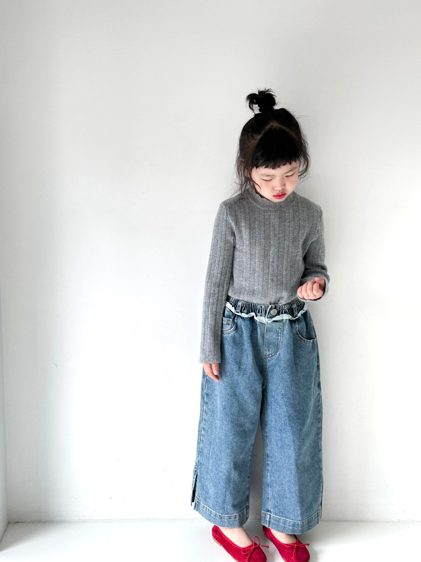 2024 한국 아동복 가을 새 여아 슬링 메쉬 원피스 단색 니트 베이스 셔츠 카디건 청바지스토어 가기