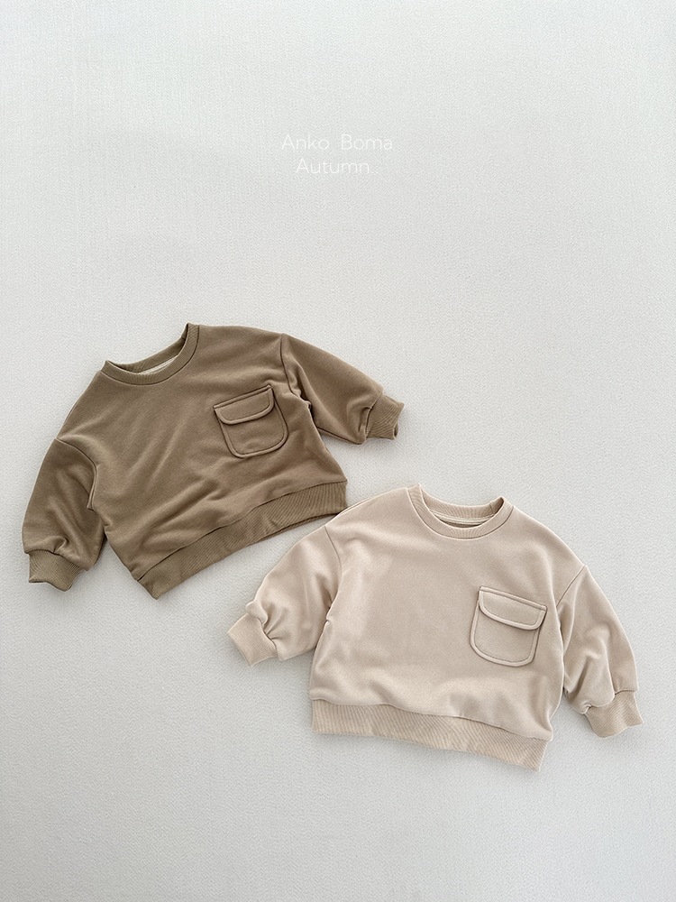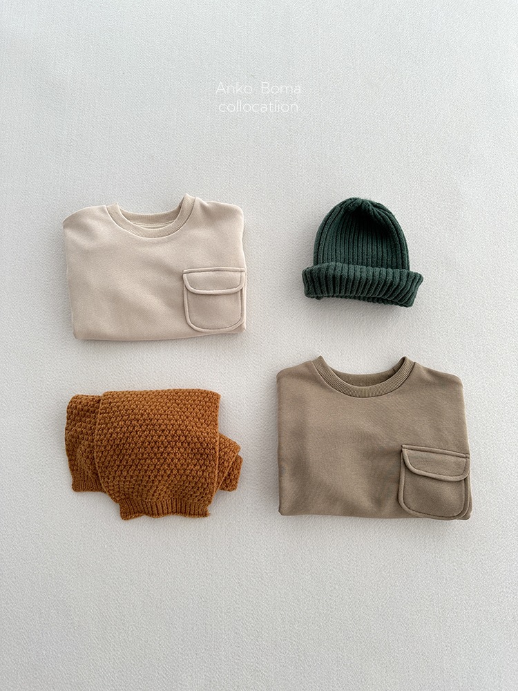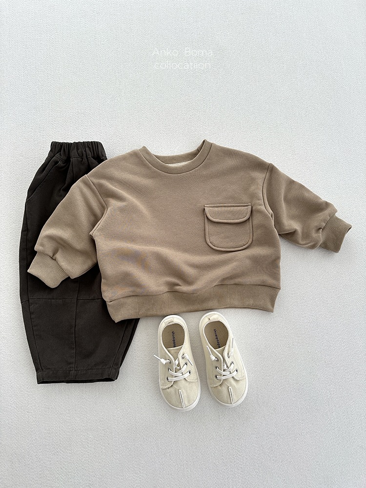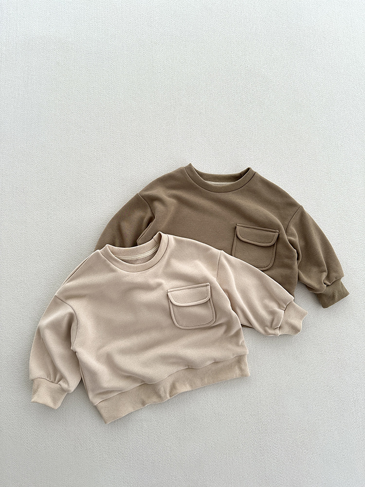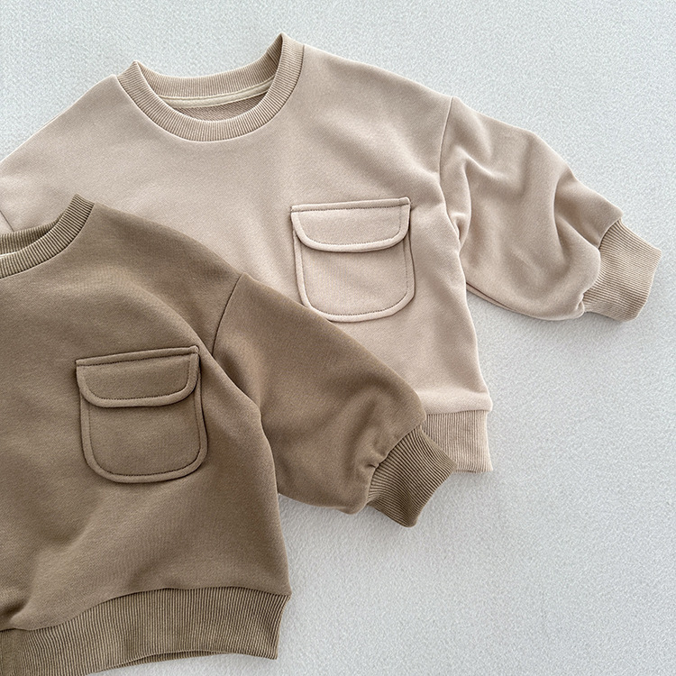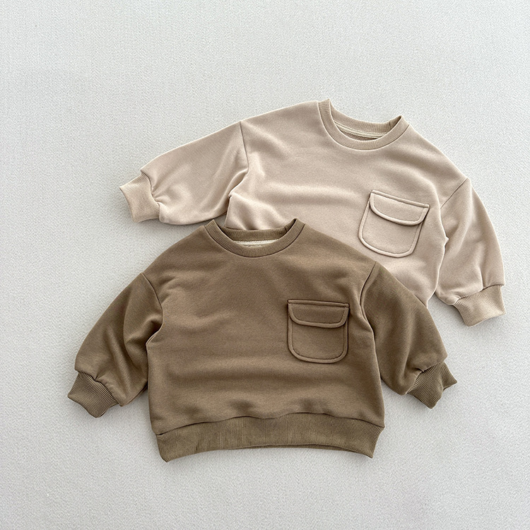 어린이 의류 가을 새로운 어린이 느슨한 포켓 솔리드 컬러 풀오버 탑 어린이 아기 북유럽 산 캐주얼 땀스토어 가기
