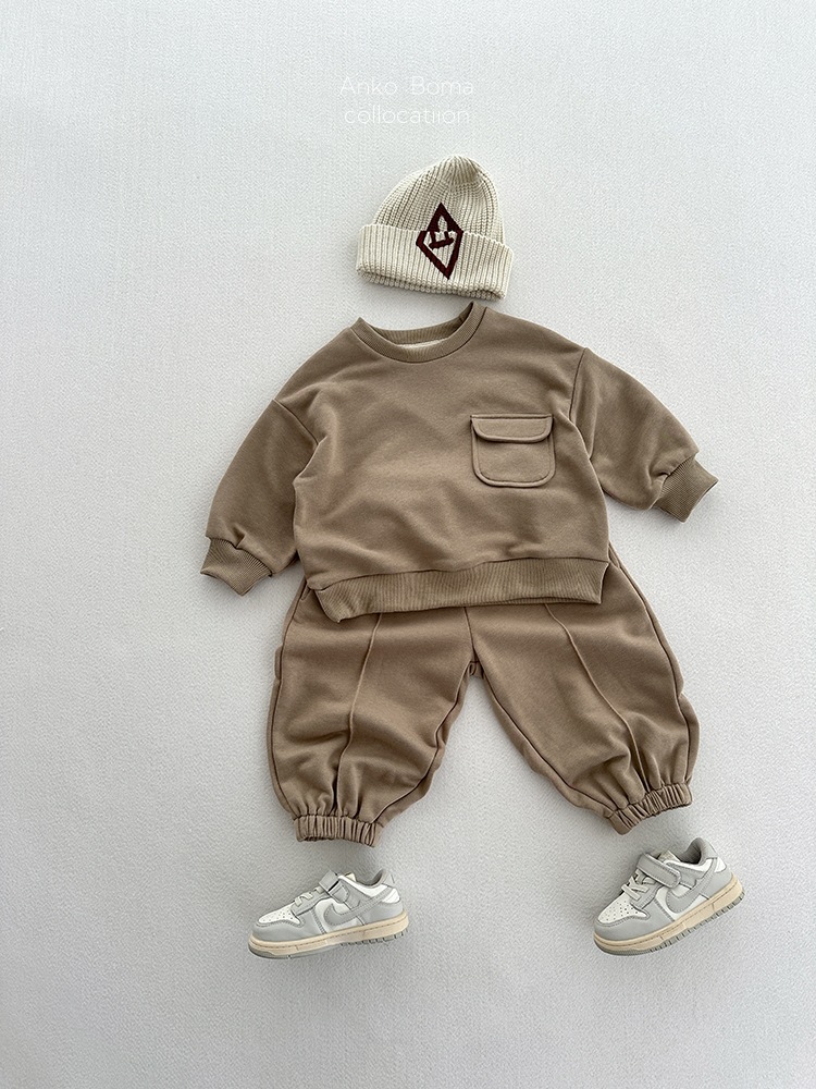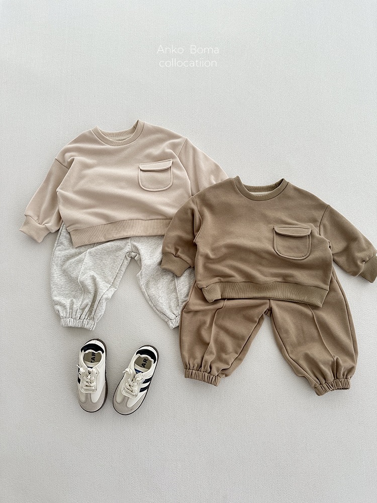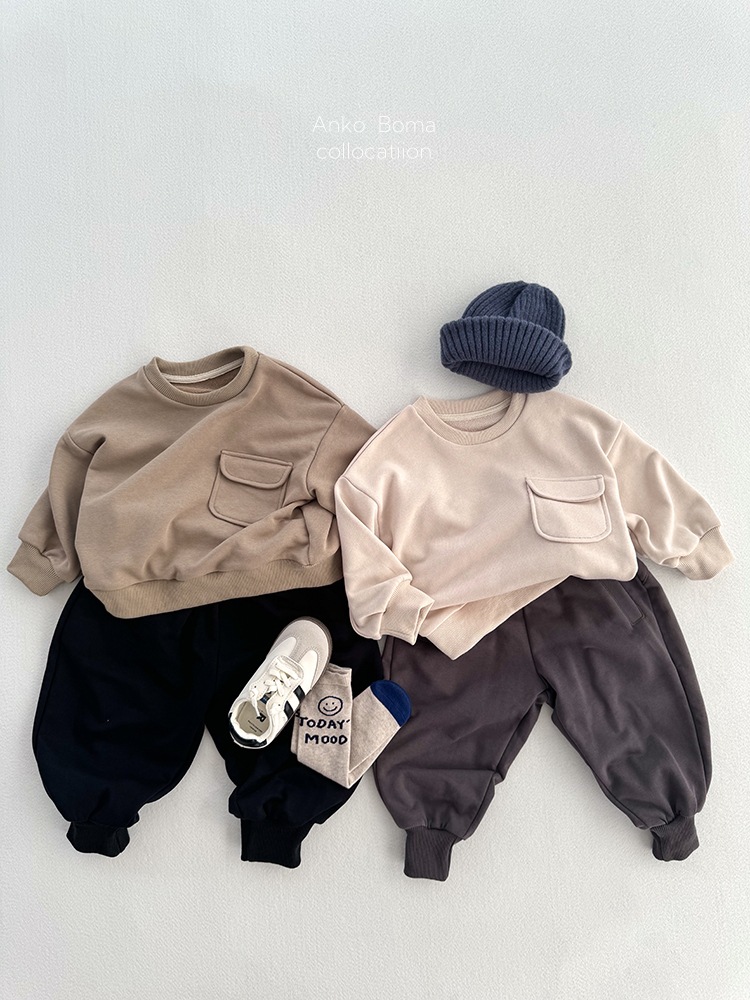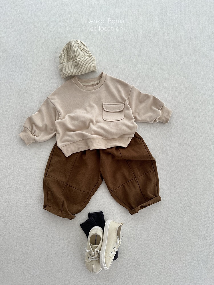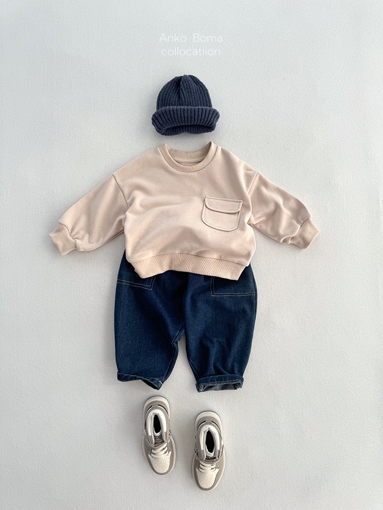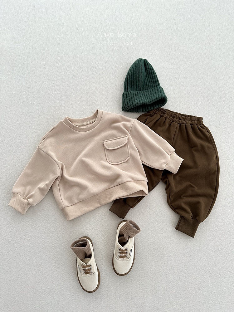 어린이 의류 가을 새로운 어린이 느슨한 포켓 솔리드 컬러 풀오버 탑 어린이 아기 북유럽 산 캐주얼 땀스토어 가기