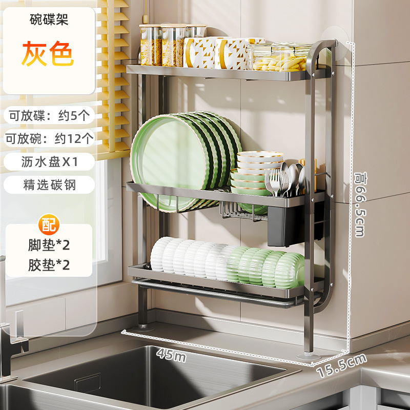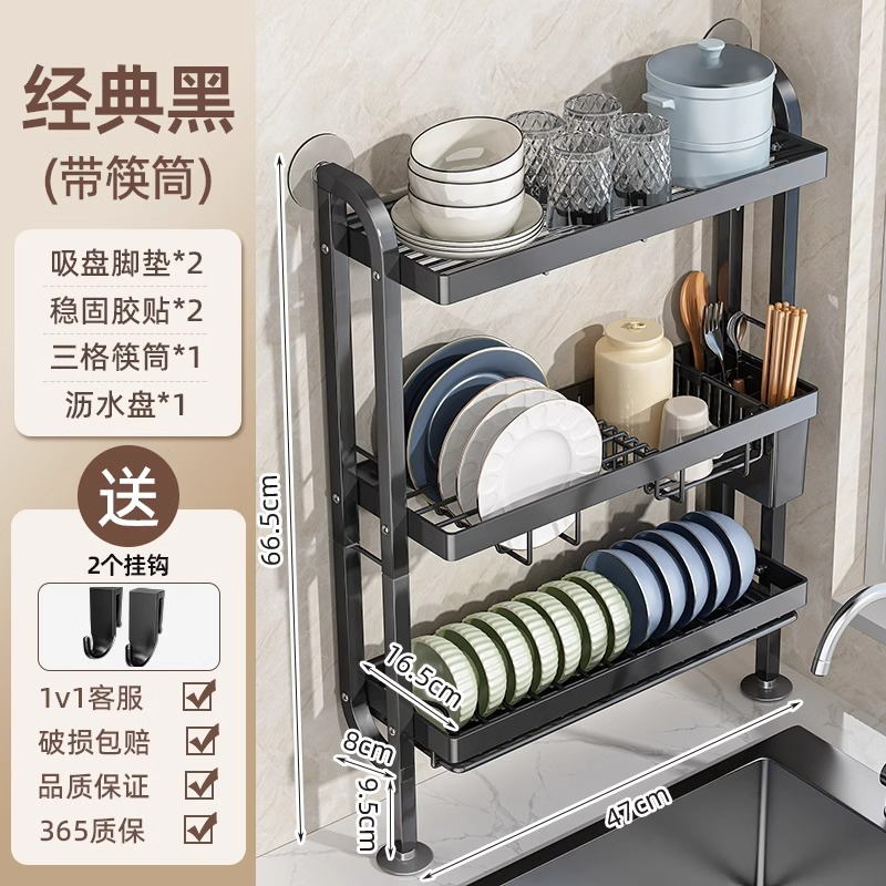 주방 벽걸이 형 수직 배수 랙 대용량 다기능 다층 저장 그릇 및 다이어트 컵 포크 젓가락 및 숟가락 보관 랙스토어 가기