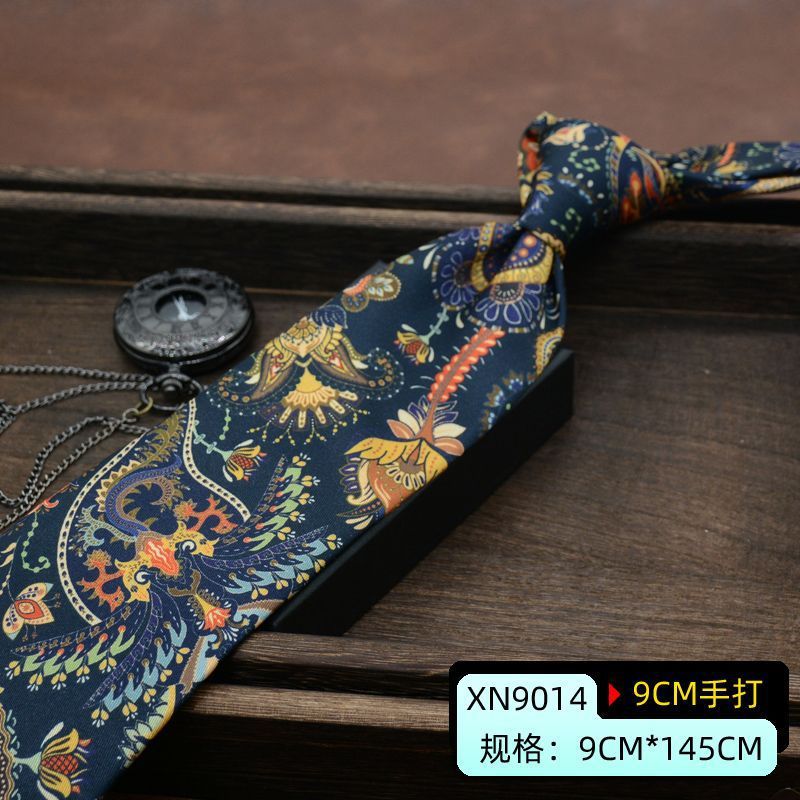 넥타이 남자 원피스 사업 한국 스타일 영국 신사 빈티지 인쇄 유럽과 미국 스타일 9CM 손 넥타이 작업 착용