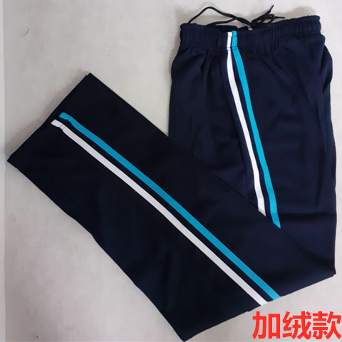 깊은 네이비 학교 바지 기모 플러스 비료 플러스 기모 화이트 스트립 겨울 청소년들이 튜브 싱글 더블 블루를 통해 곧장스토어 가기