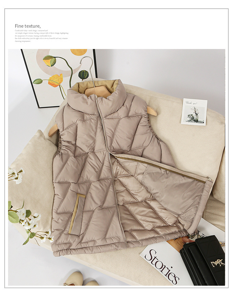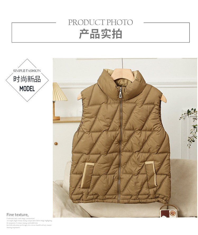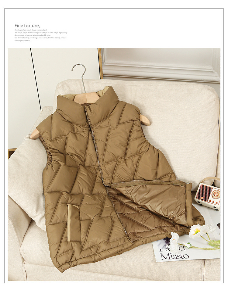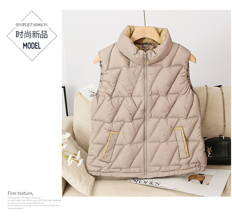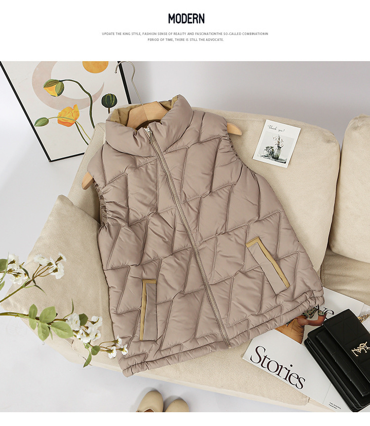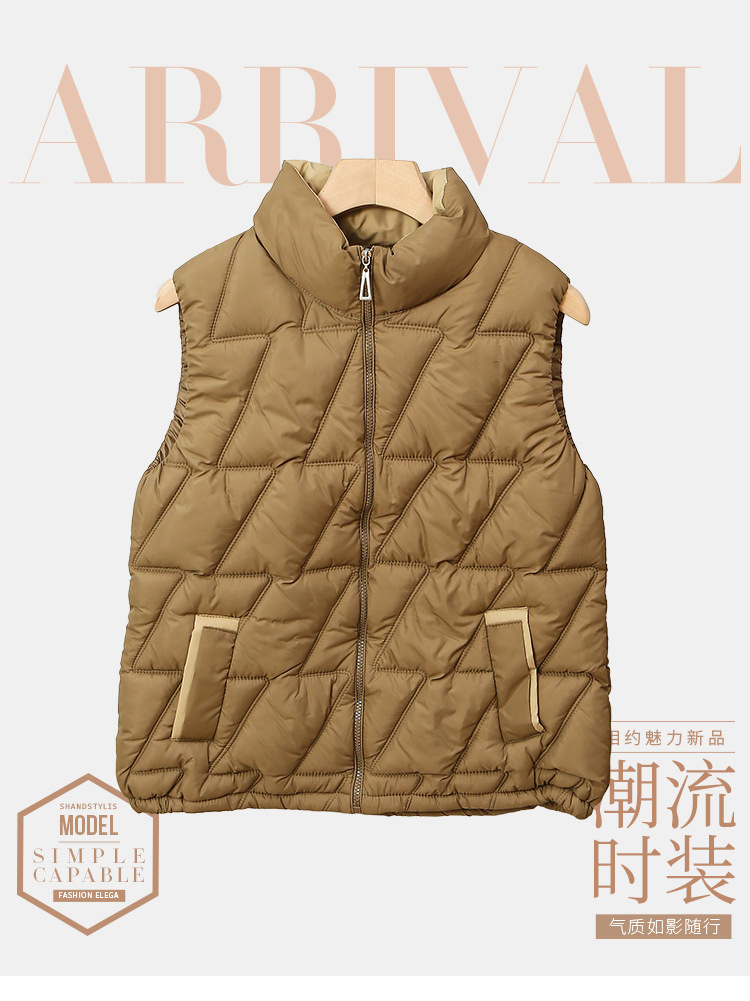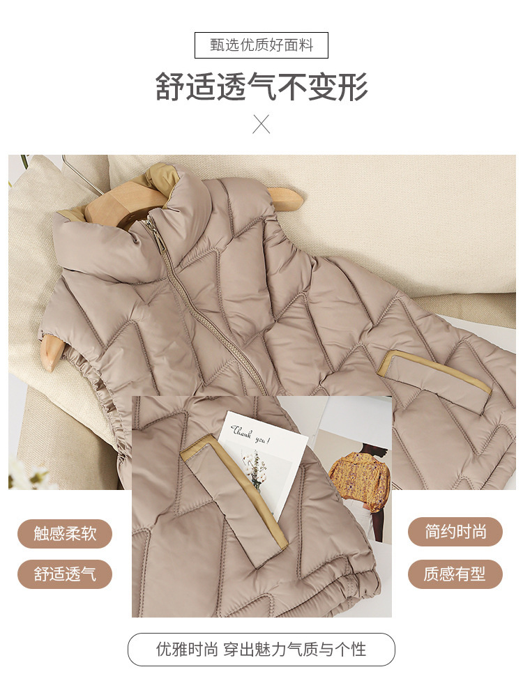 새로운 2024 다운 코튼 가을과 겨울 조끼 여자 겨울 우아한 올 매치 두꺼운 조끼 세로 칼라가있는 민소매 재킷