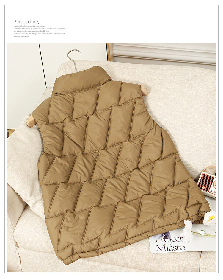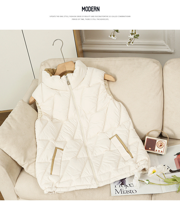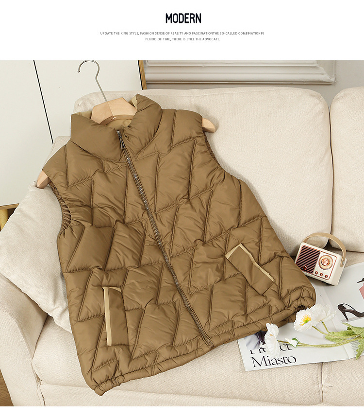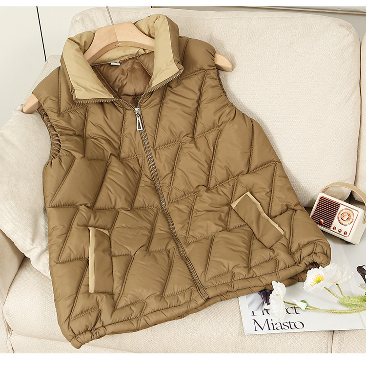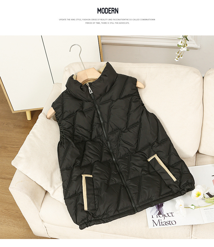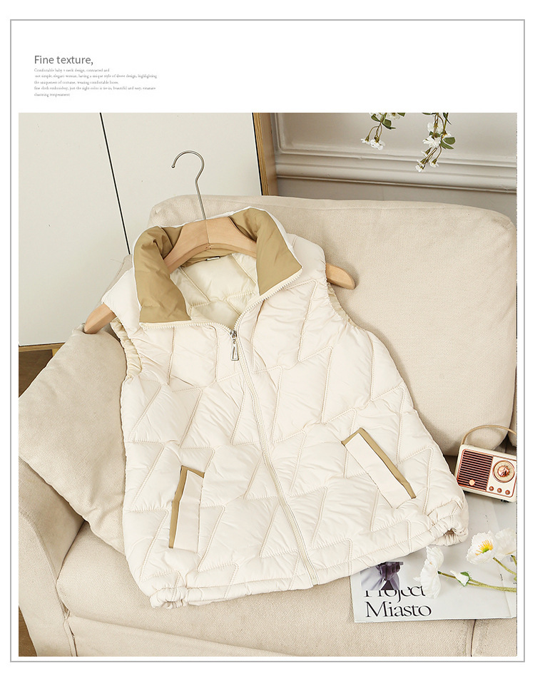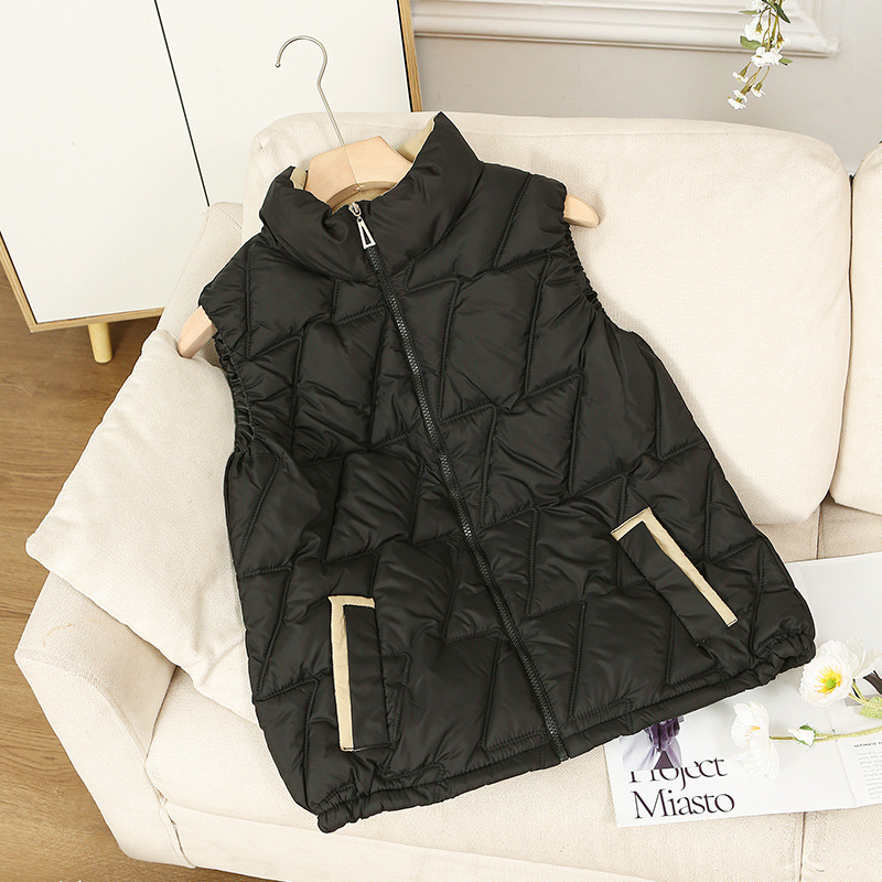 새로운 2024 다운 코튼 가을과 겨울 조끼 여자 겨울 우아한 올 매치 두꺼운 조끼 세로 칼라가있는 민소매 재킷