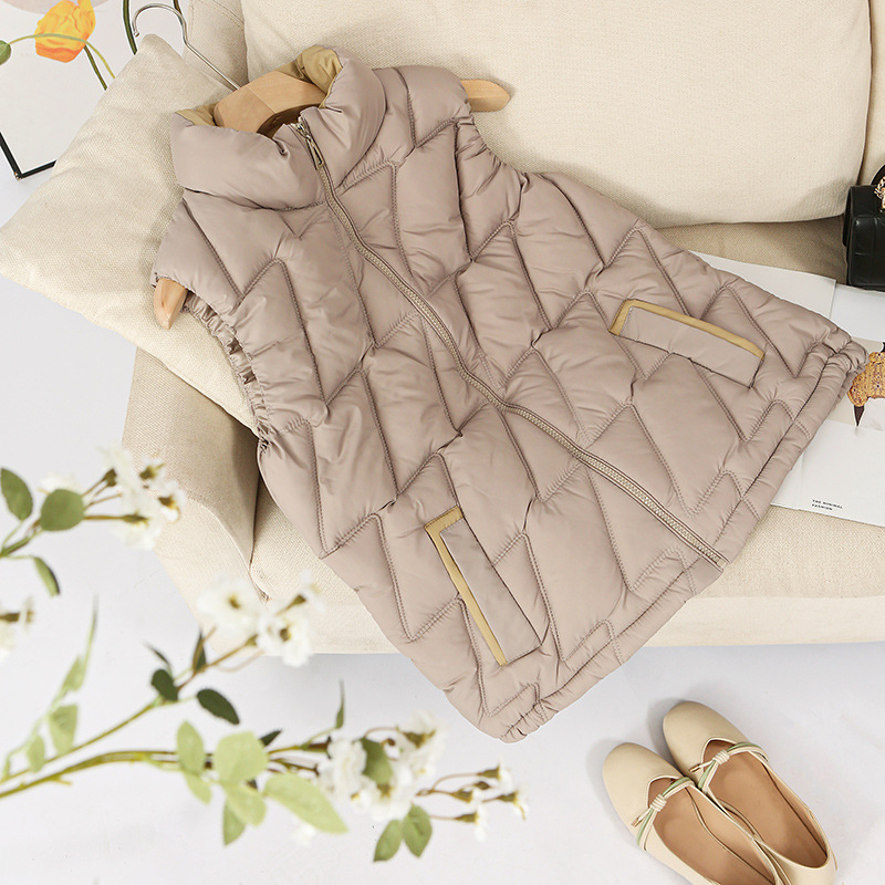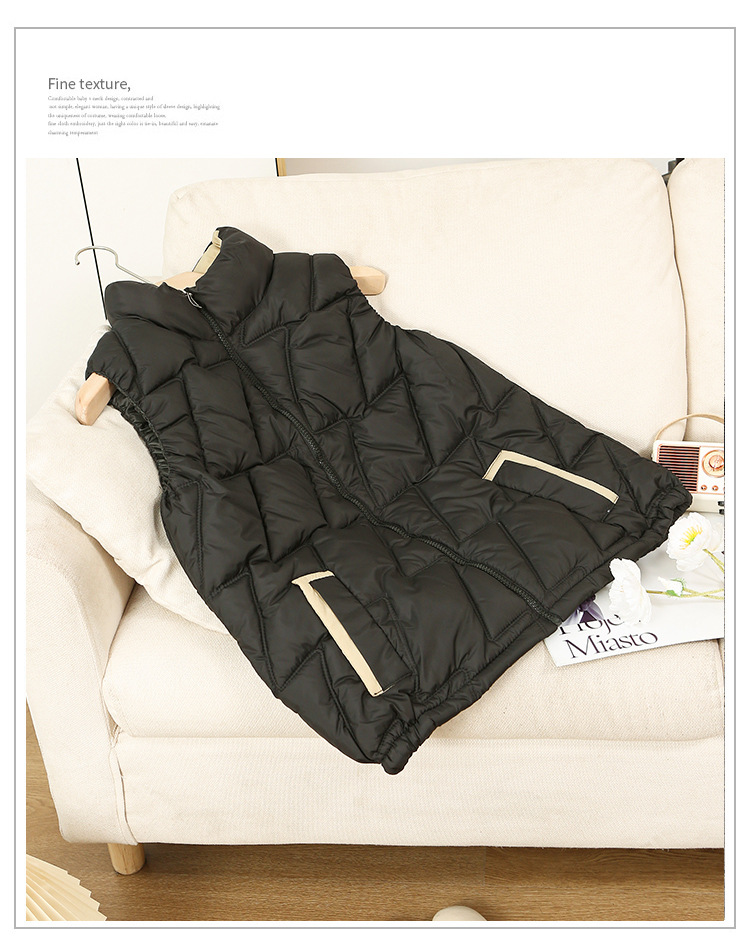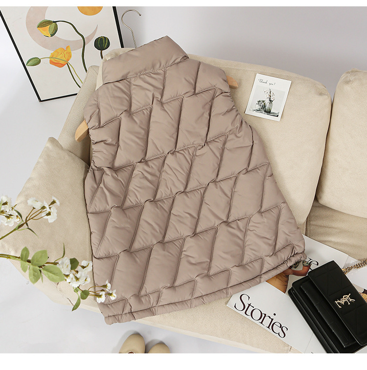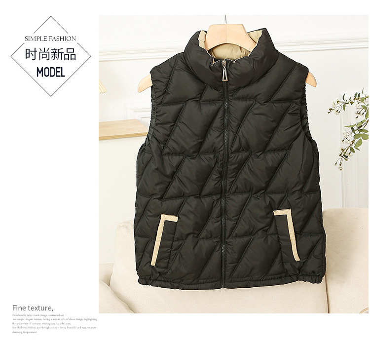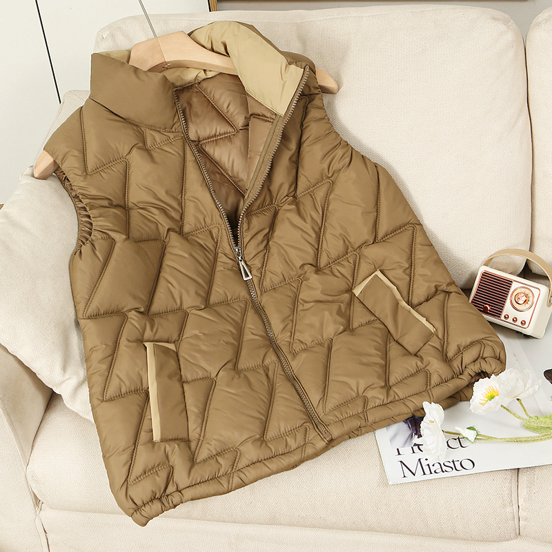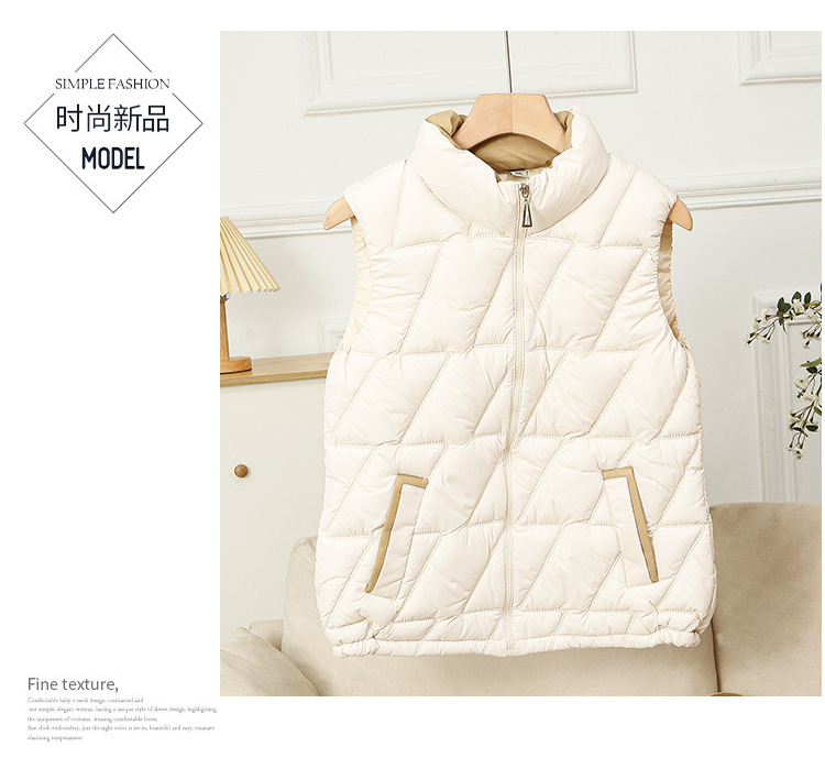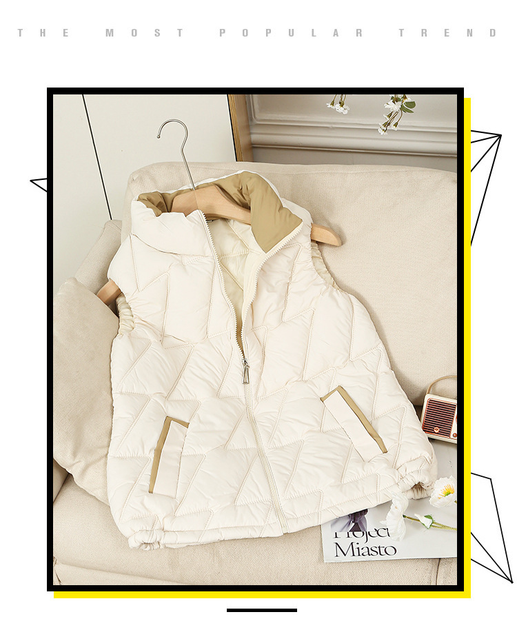 새로운 2024 다운 코튼 가을과 겨울 조끼 여자 겨울 우아한 올 매치 두꺼운 조끼 세로 칼라가있는 민소매 재킷