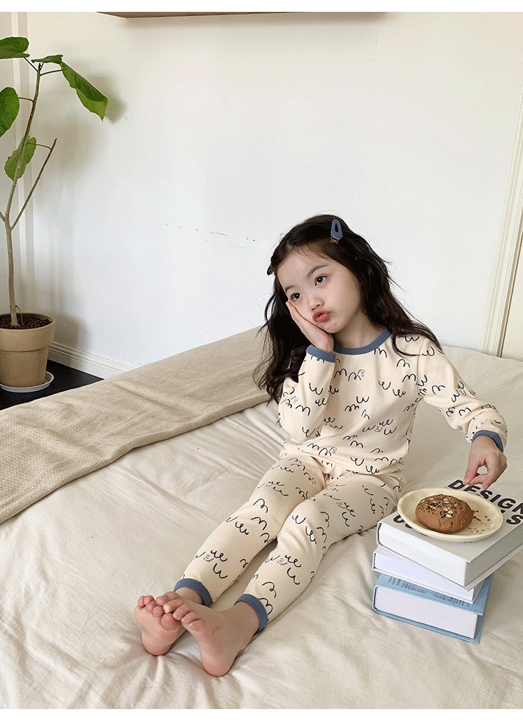 아기 가을 겨울 따뜻한 옷 세트 여자 아기 만화 가을옷 가을바지 어린이 패션 홈웨어 남녀 아동 잠옷 귀여운 디자인