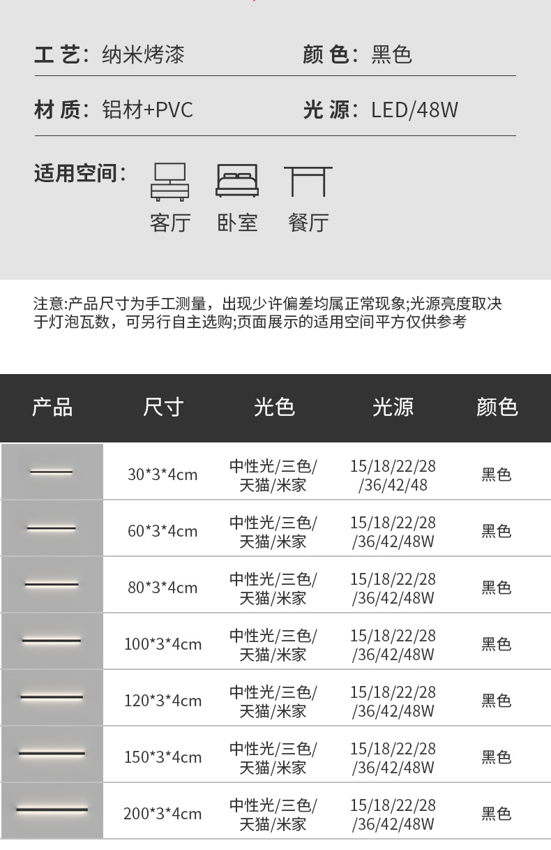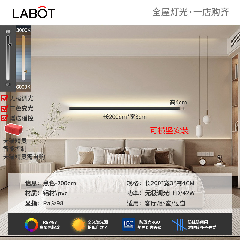 • 알루미늄 모델 [풀 스펙트럼 광원] 200cm 무단계 디밍 42W + 무료 리모콘(Tmall Elf 지원)