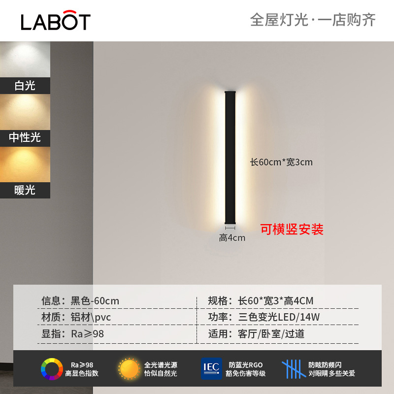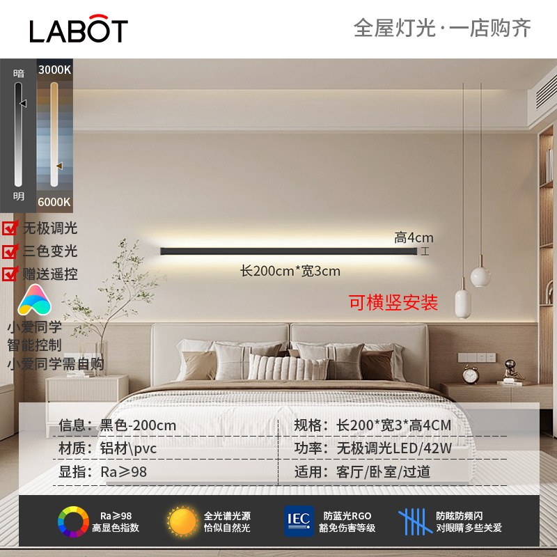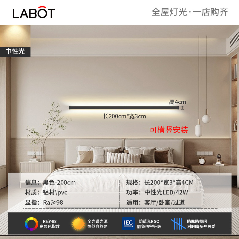 벽 램프 미니멀리스트 침실 침대 옆 램프 led 한 단어 긴 선형 램프 통로 거실 소파 배경 벽 분위기 램프스토어 가기