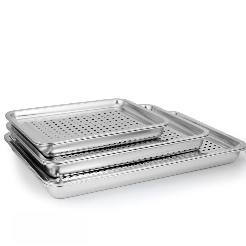 스테인레스 스틸 트레이 누수 트레이 드로잉 트레이 프라이팬 오일 컨트롤 트레이 찜 빵 찜 트레이 펀칭 스퀘어 트레이 구멍 트레이 Baihan Zhe