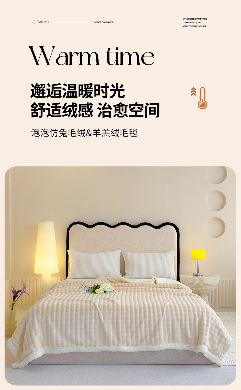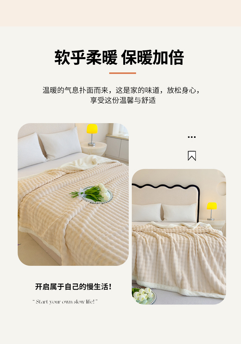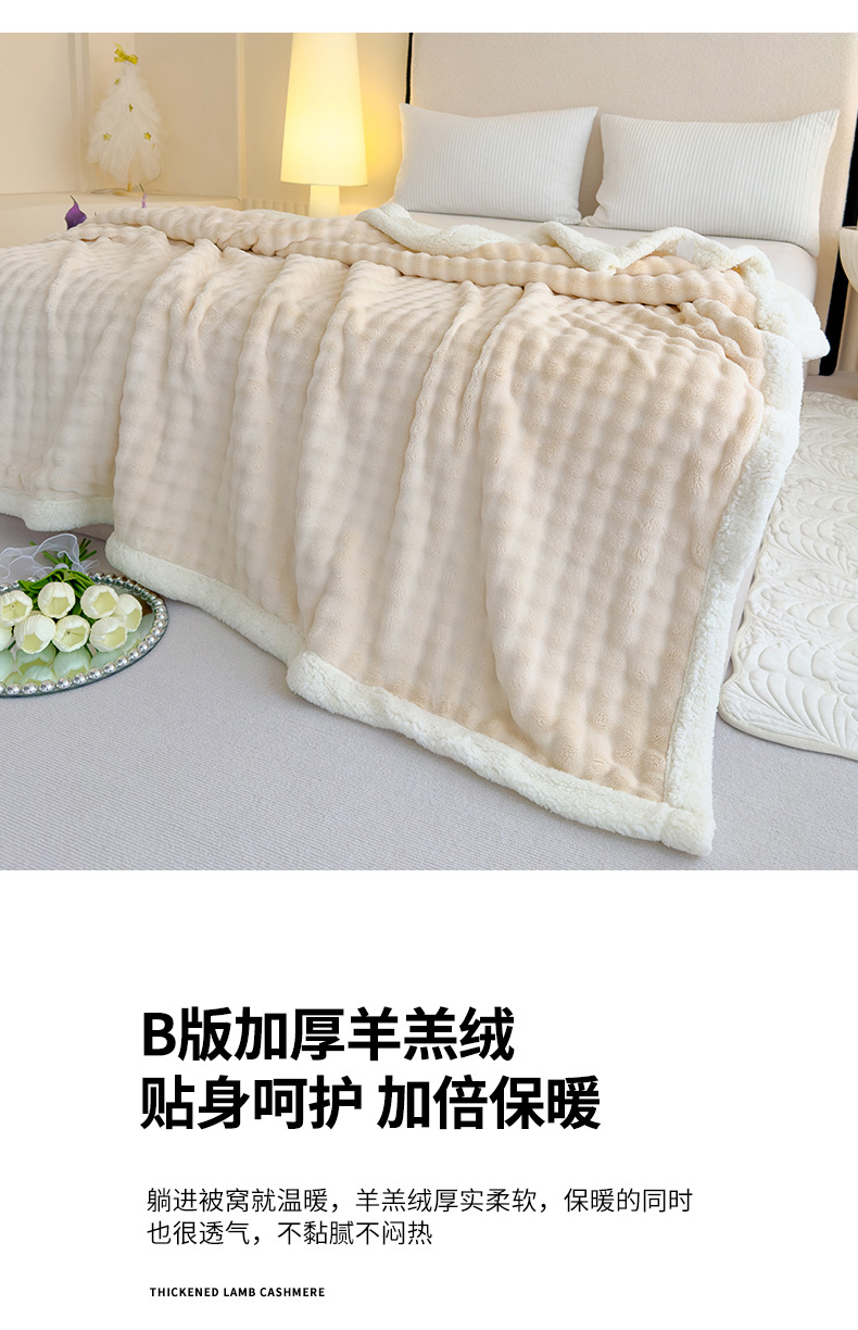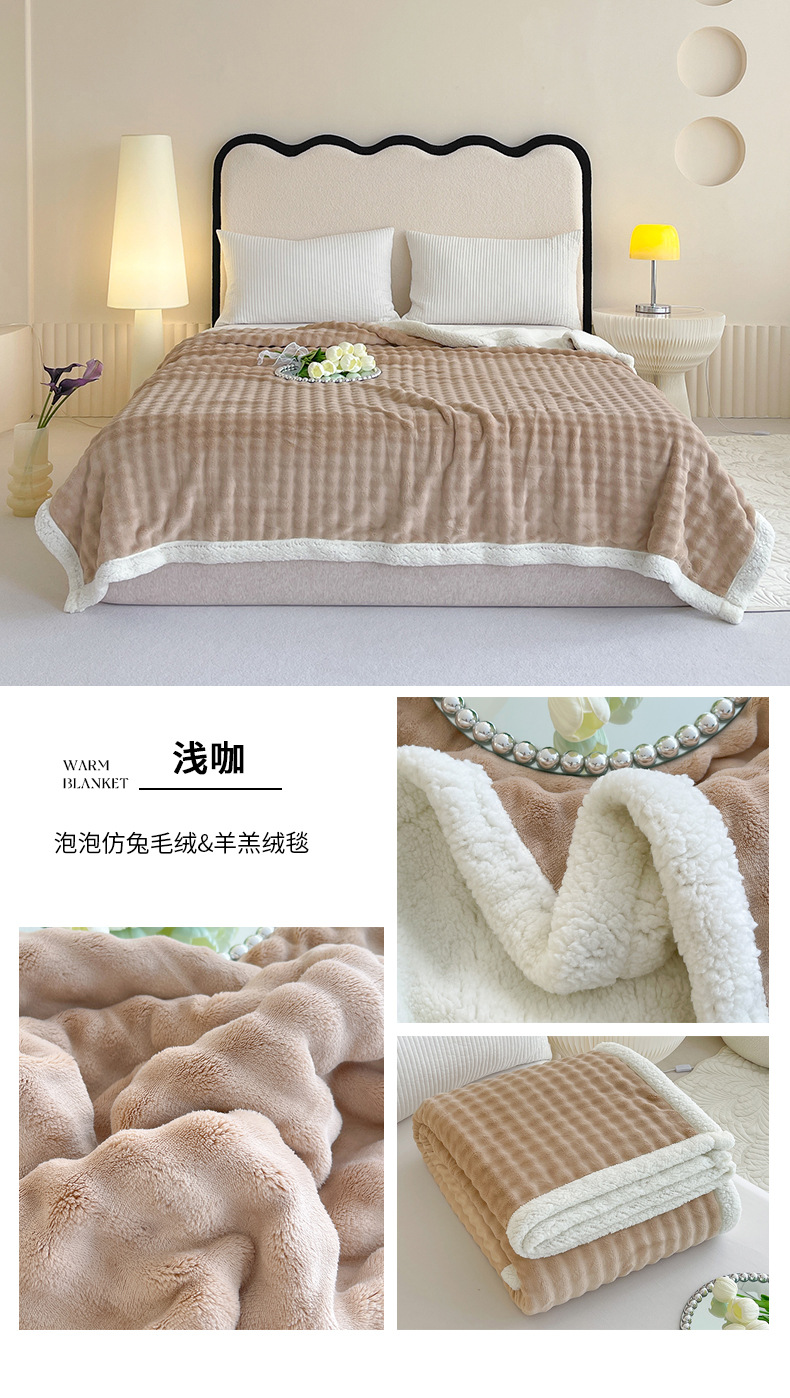 • 버블 래빗 퍼 더블 레이어 셰르파 담요 - 라이트 커피