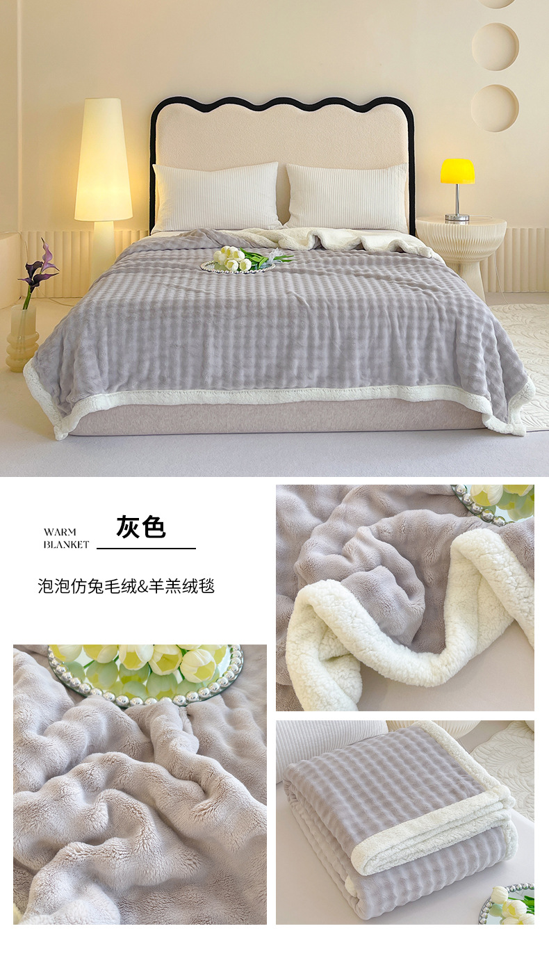 • 버블 래빗 퍼 더블 레이어 셰르파 담요 - 그레이