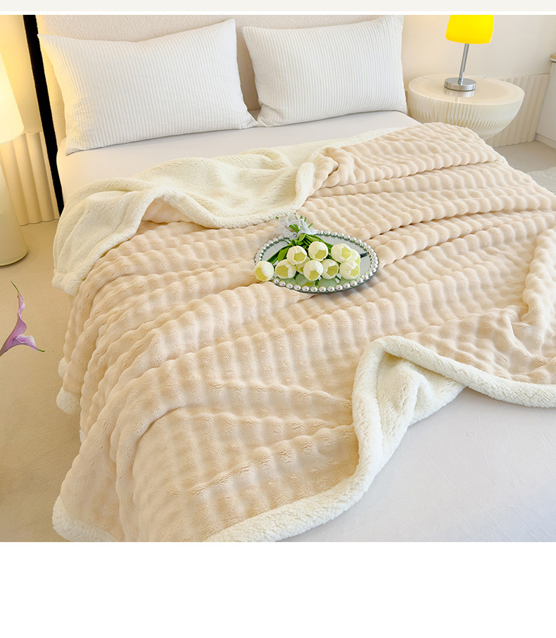 • 버블 래빗 퍼 더블 레이어 셰르파 담요 - 밀크 화이트