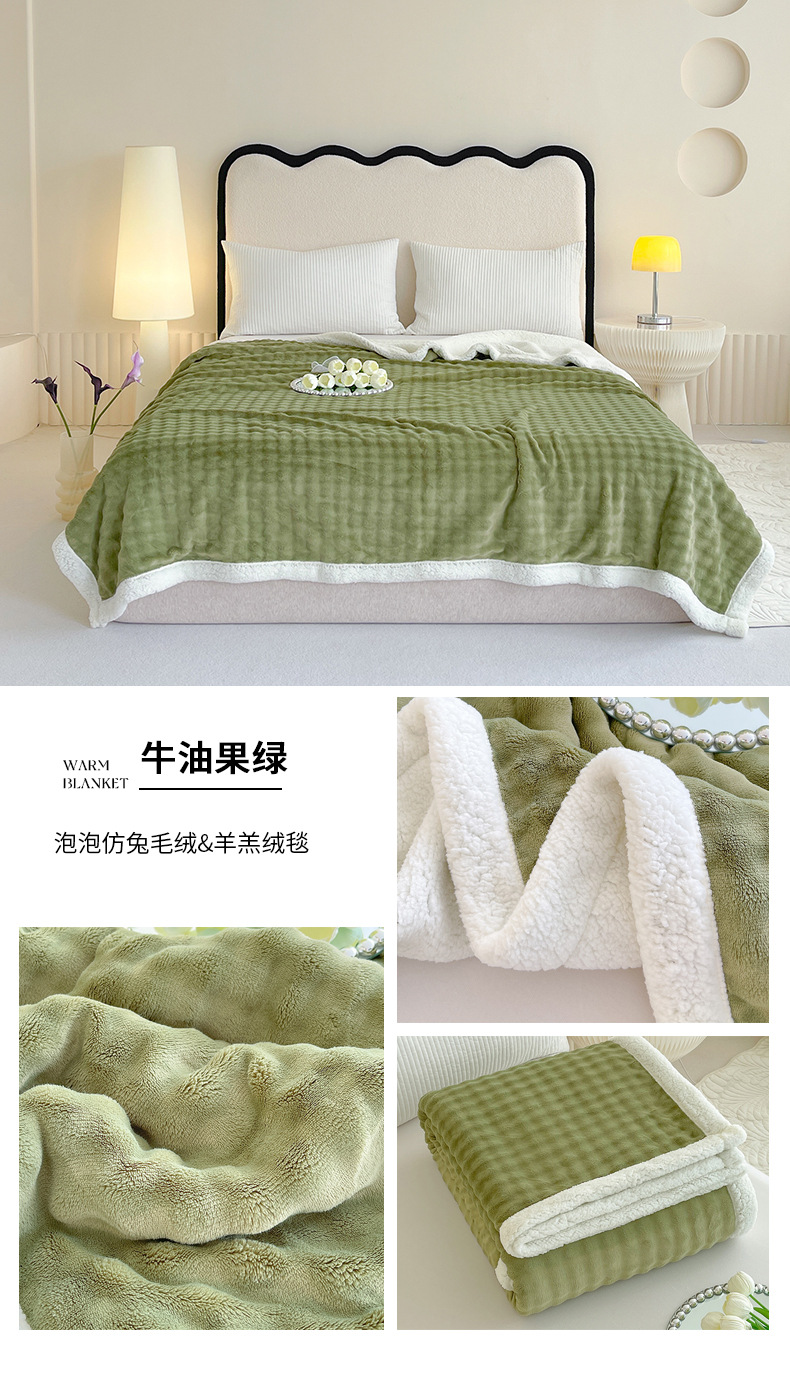 • 버블 래빗 퍼 더블 레이어 셰르파 담요 - 아보카도 그린